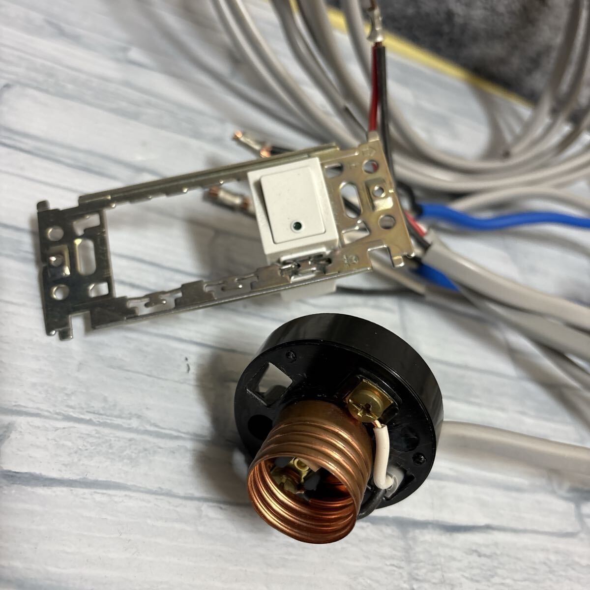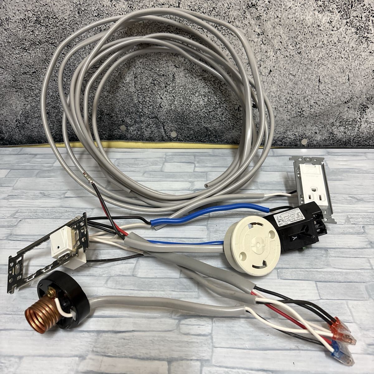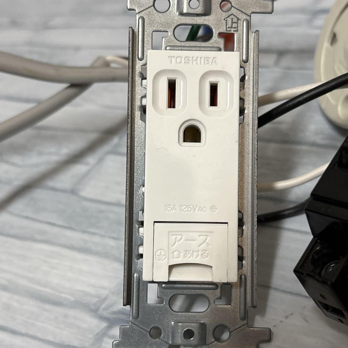 Panasonic製スイッチ、TOSHIBA製アース付きコンセント、引掛けシーリング、E26口金ソケットを組み合わせた電気配線セットです。