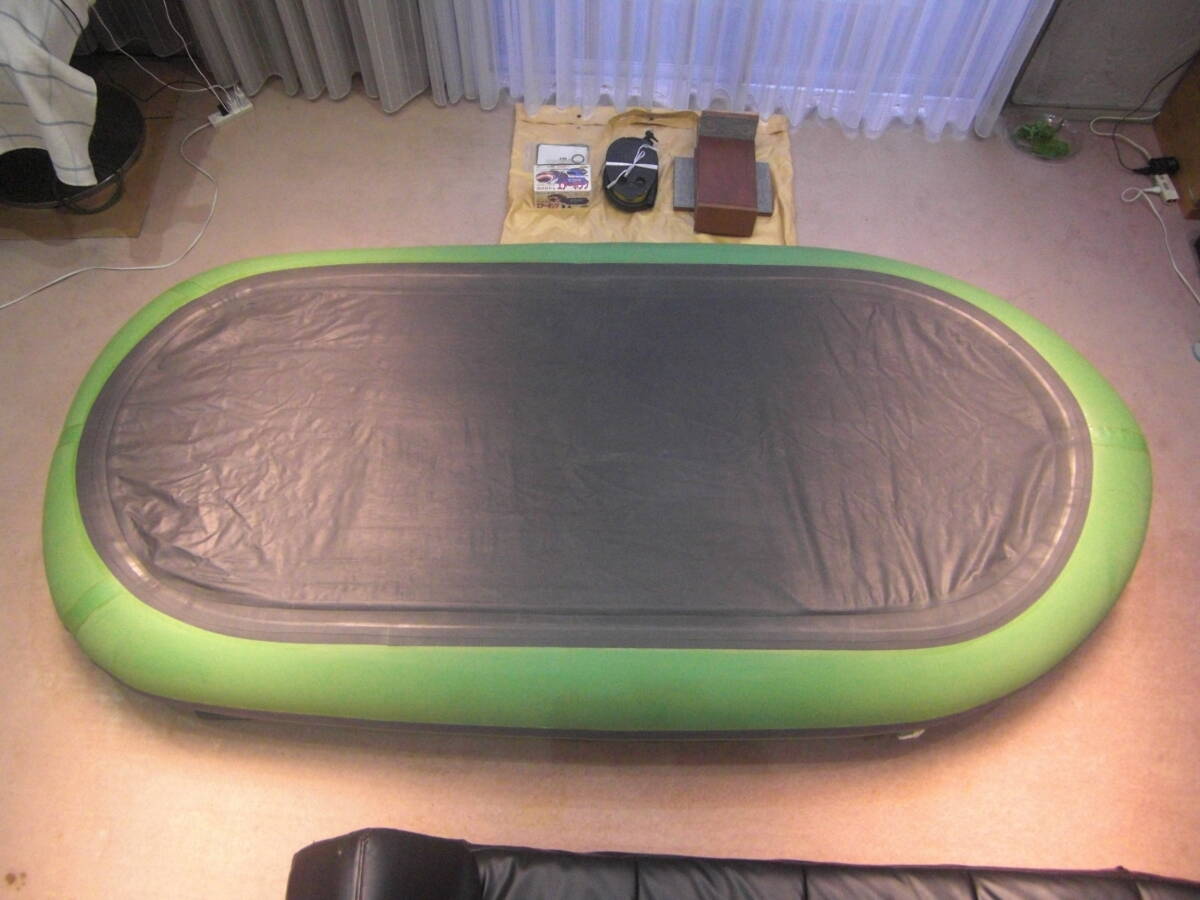 大きなキズはありませんが画像のように1箇所だけ補修があります。小さなもので完全に補修されており、エアー漏れは一切ありません。また、接合部のはがれもありません。