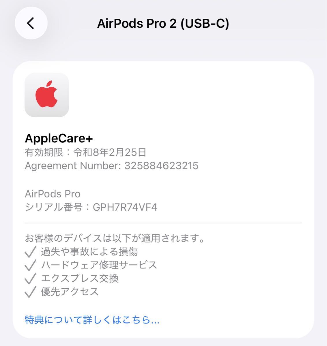 備考:AppleCare+の有効期限令和8年2月25日迄