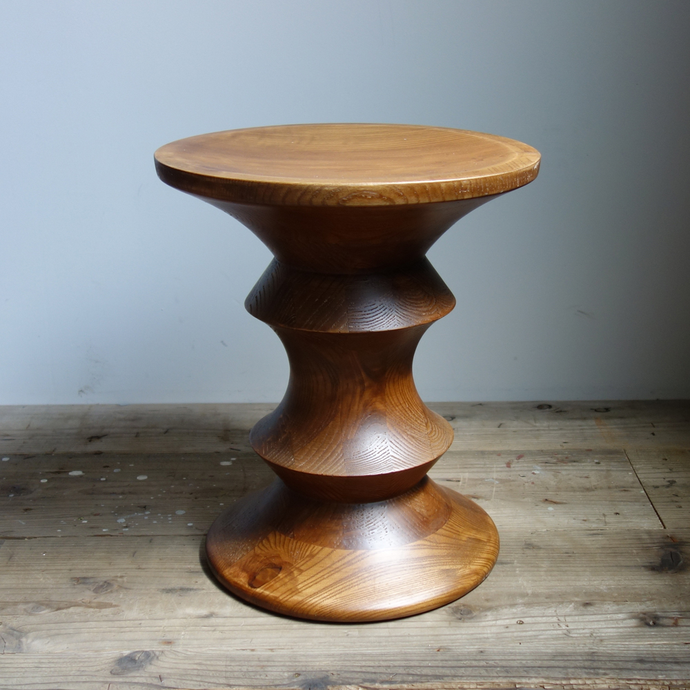 1960年にイームズがタイム社のニューヨーク・タイムライフ・ビルディングのロビーをデザインした際に製作されたスツールでそのフォルムはチェスの駒のようでもあり木目などの質感を十分に生かし存在感を放ち、彫刻を思わせるそのフォルムはオブジェとしても存分に楽しめるスツールです。当初はテーブルとして考えられていましたがレイ イームズ本人が好んで座ったことからスツールと呼ばれるようになったといわれています。重量がある木製品となり重厚感ある作りが感じられると思います。