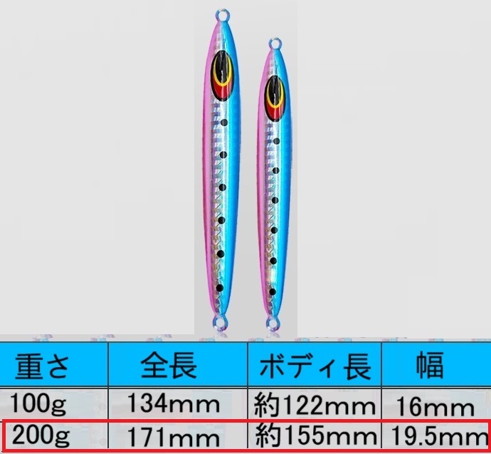 メタルジグ 200g 17cm ソルトルアー(オフショア)セミロング 青物 底物 タチウオ など