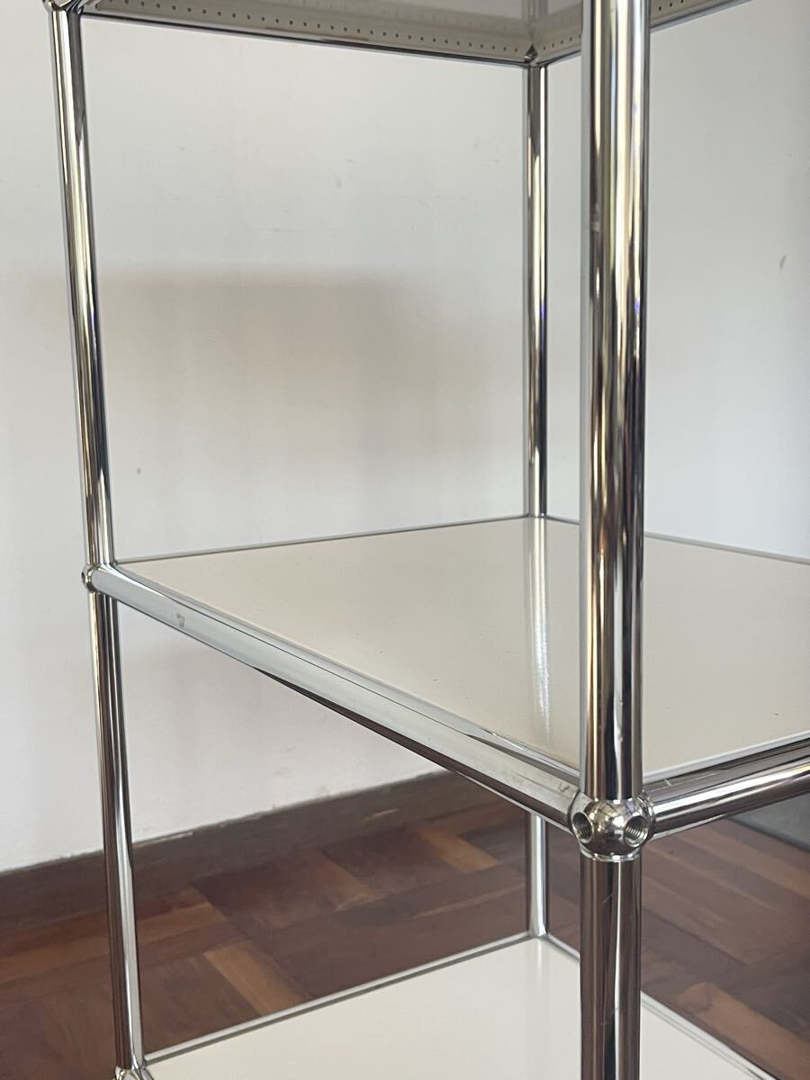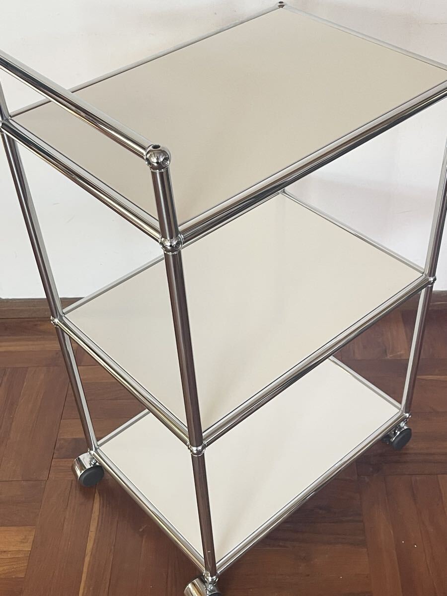 中古ですので金属に多少のアタリキズなどの使用感はありますが、外観を損ねるようなキズやヨゴレはなく、キャスターストッパー付きも正常に可動し、使用にあたる問題はなく全体的に状態は良好です。