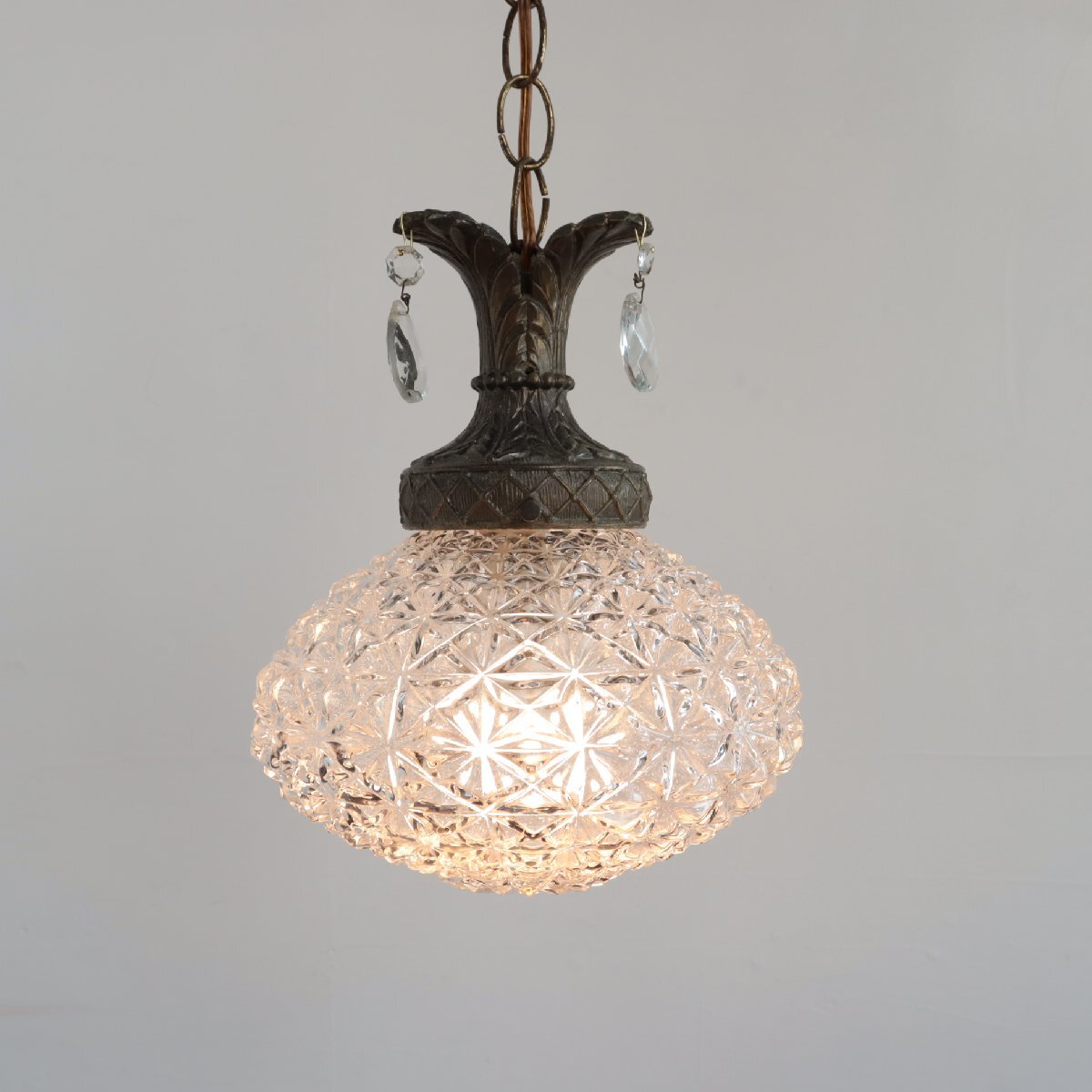 | 商品説明 explanation | アメリカで使用されていた、ヴィンテージのカットガラスのペンダントランプです。 カッティングにより灯りが柔らかく、きらびやかに空間を灯してくれます。 小ぶりなサイズ感で、様々な空間にも馴染みやすい照明です。 ご家庭のインテリア、カフェや店舗什器にいかがでしょうか |