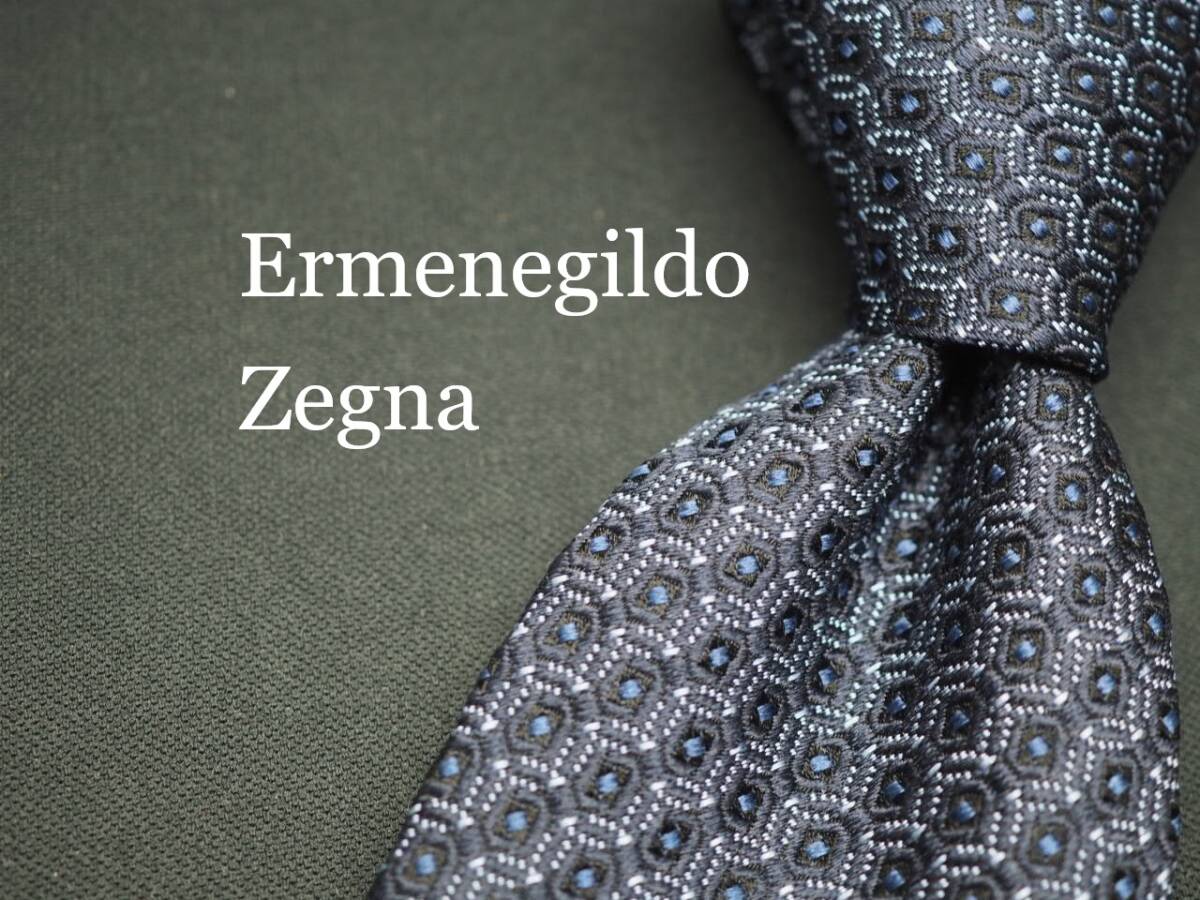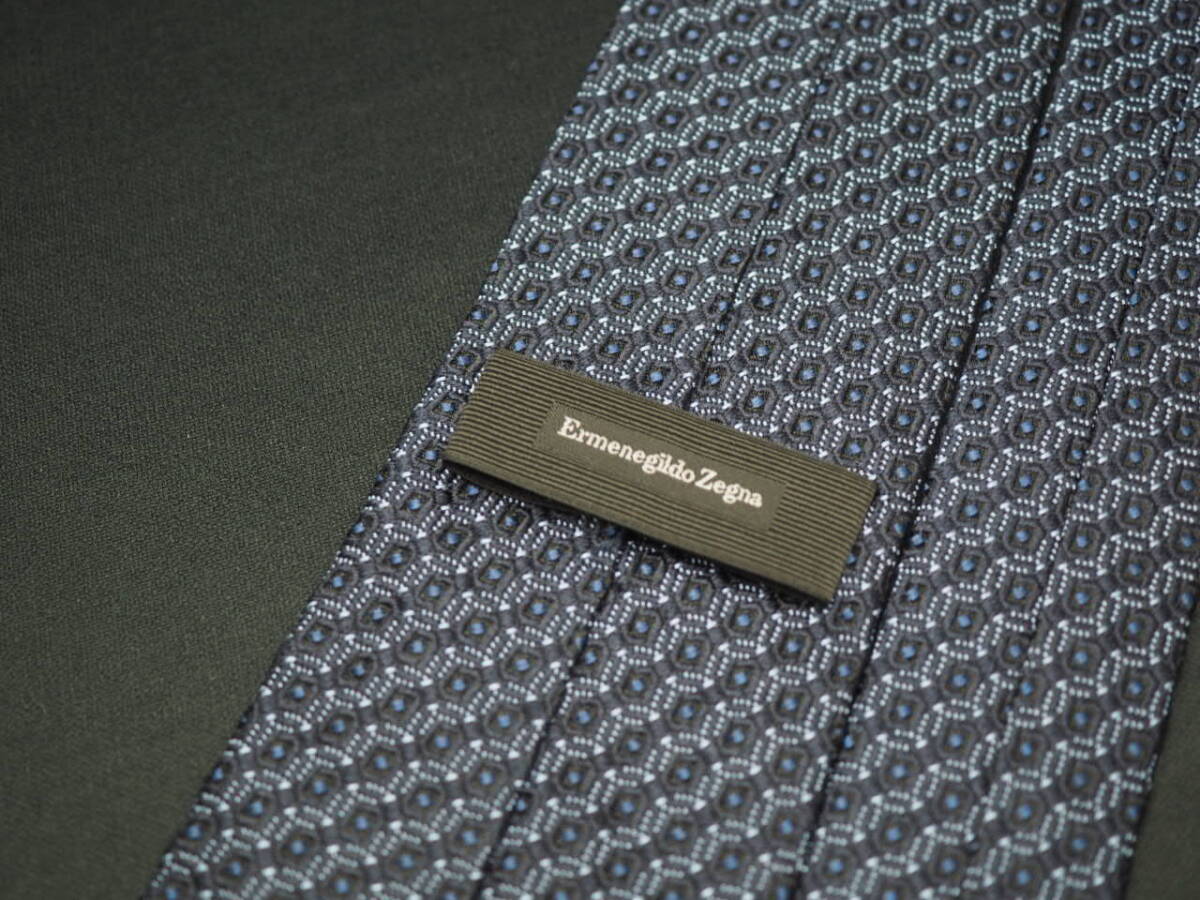 美品【Ermenegildo Zegna エルメネジルドゼニア】 F2701 ネイビー ブラック系 SILK ブランド ネクタイ 古着 良品 転売 仕入
