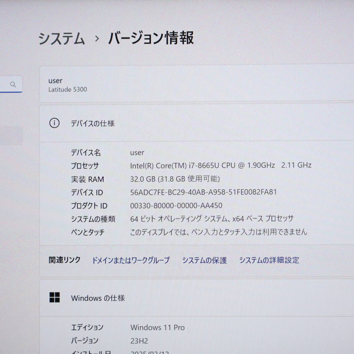 ★超美品 最上級8世代4コアi7!NVMeSSD512GB メモリ32GB★LATITUDE5300 Core i7-8665U Webカメラ TypeC Win11 MS Office2019 H&B★P93594