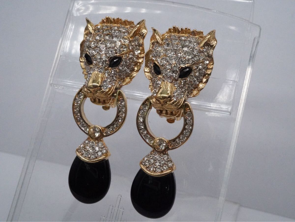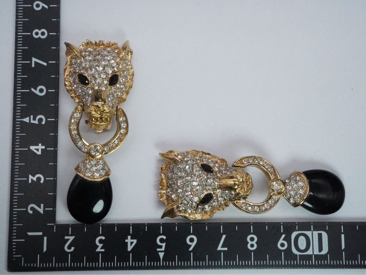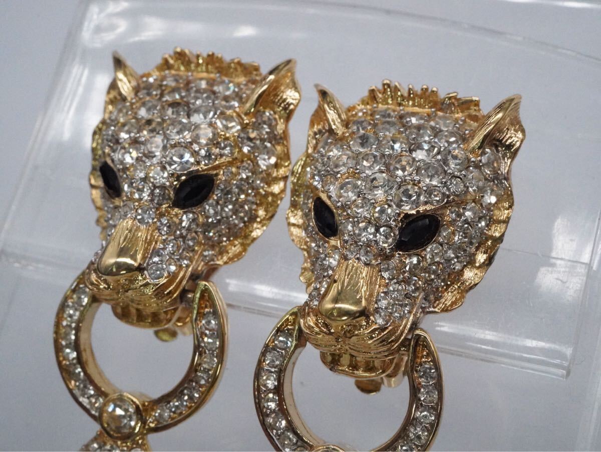 【581】ニナリッチ NINA RICCI ラインストーン ヒョウ? 動物 アニマル イヤリング アクセサリー TIA