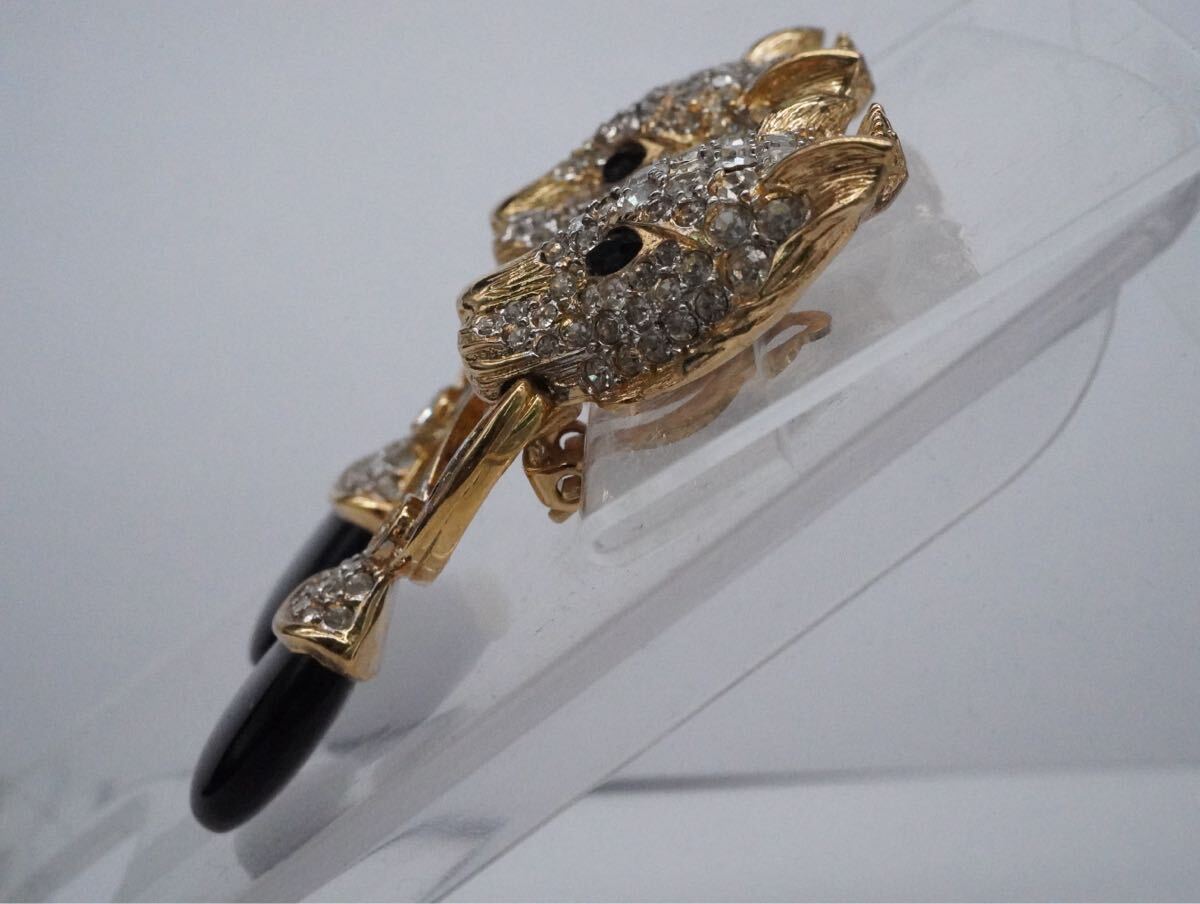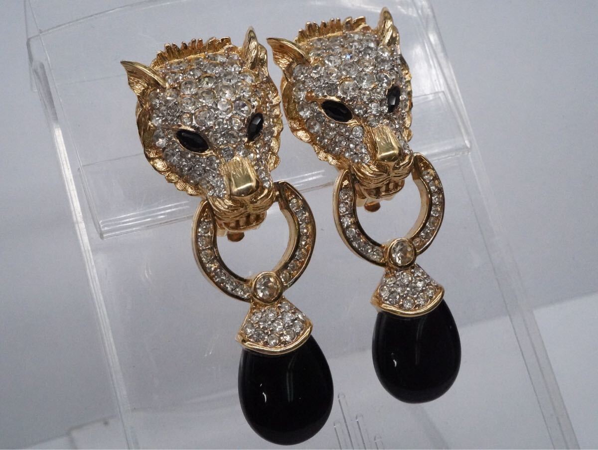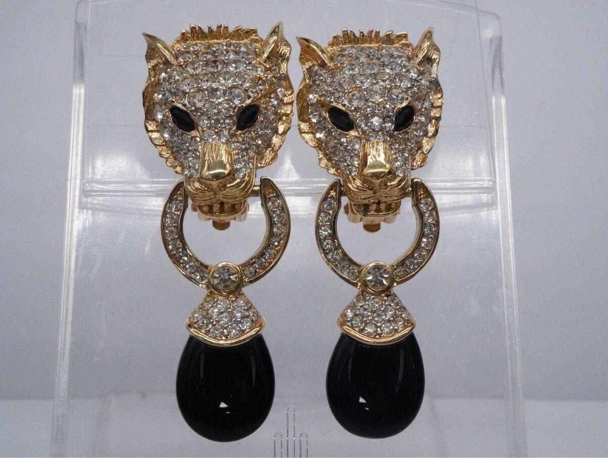 【581】ニナリッチ NINA RICCI ラインストーン ヒョウ? 動物 アニマル イヤリング アクセサリー TIA