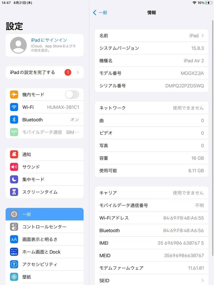 ・OS:iPadOS 15.8.3