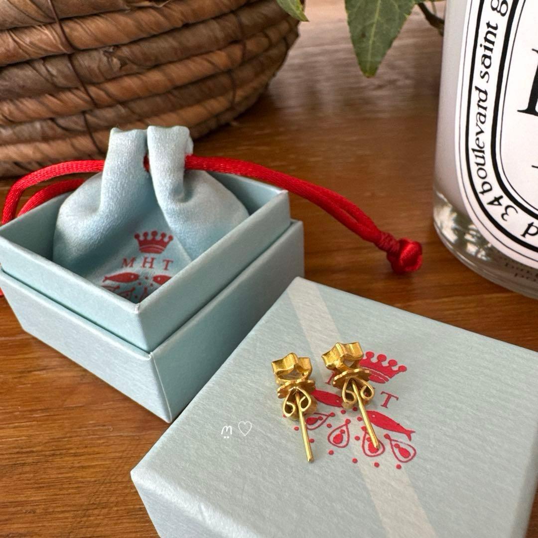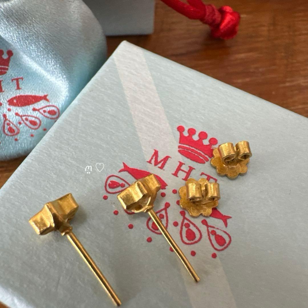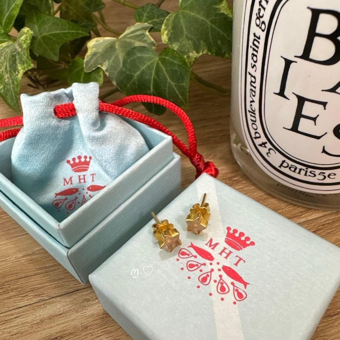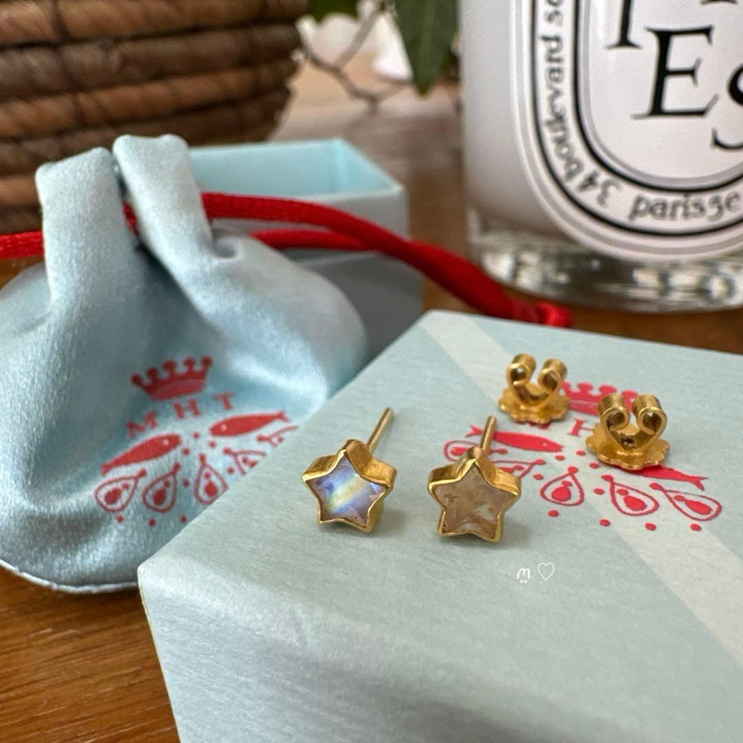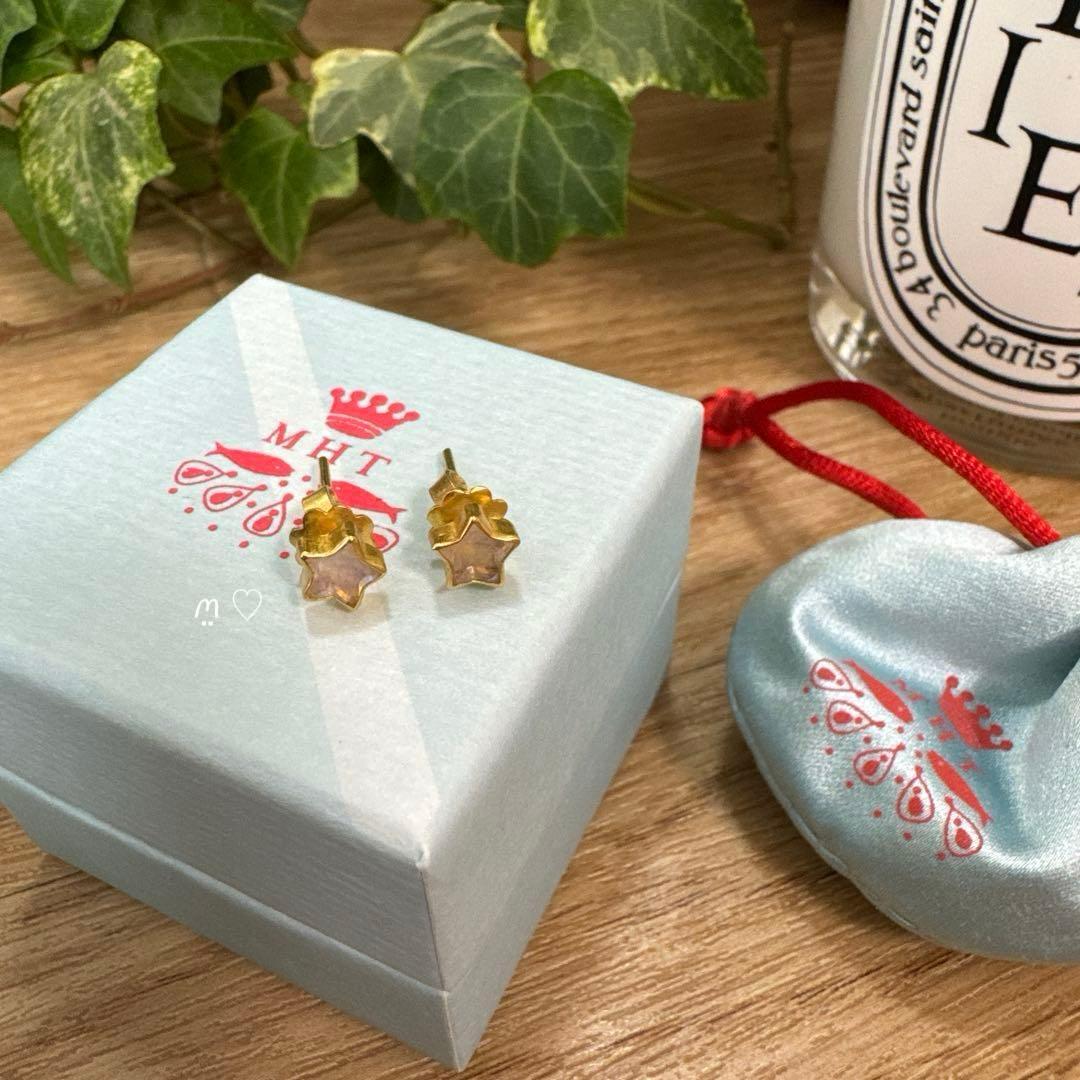 はちみつ色の22ゴールドでかたどられた、スターモチーフのピアス。
