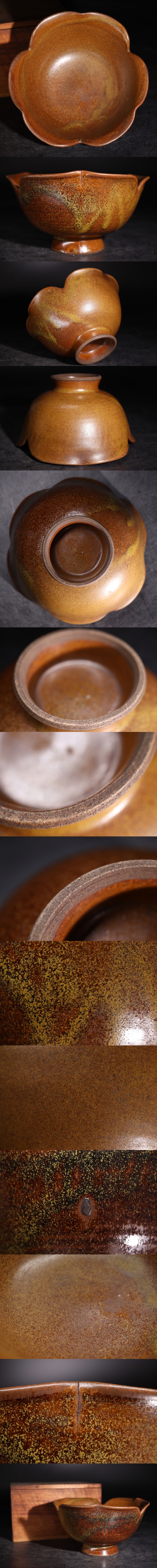 | 時代 蕎麦釉 花形 大型 茶碗 木箱付 / 中国美術 茶器 鉢 煎茶道具 煎茶飾 .G2934 |