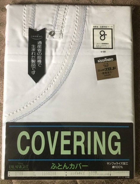 日清紡 三ッ桃ブロード 『8字型アメリカンホック付 掛けふとんカバー』 防縮加工 《155 x 200 cm》 日本製 昭和レトロ 【未開封品】