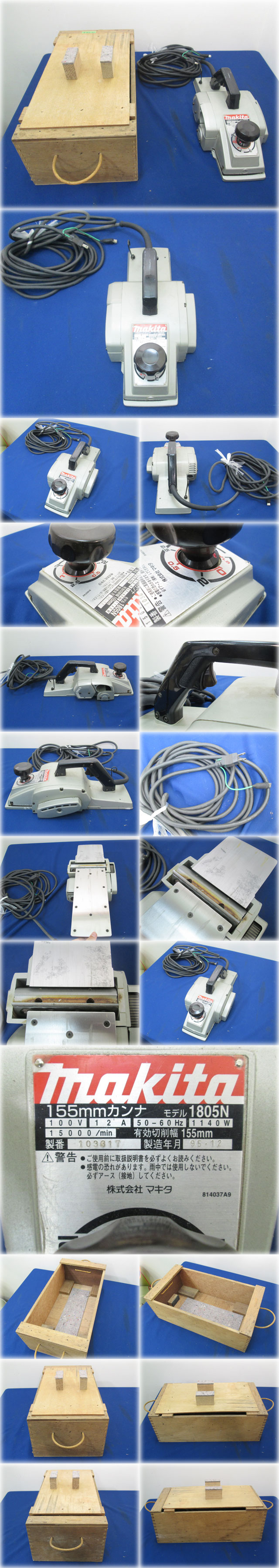 マキタ 155mm電気カンナ 1805N を出品いたします。 ■特徴■ 五寸柱も余裕の一削り! 切削幅155mm 単相100V、替刃式 ■仕様■