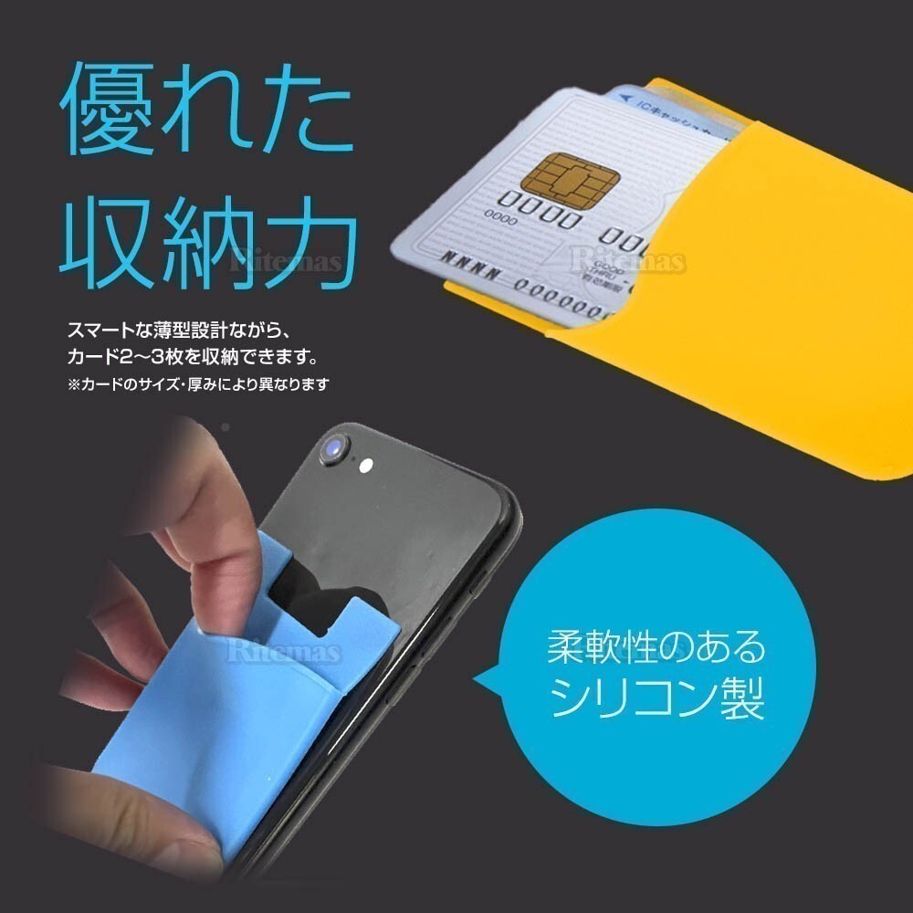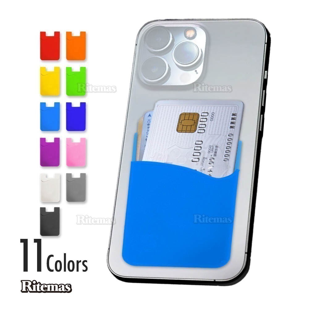 スマホ カードケース カードホルダー 貼り付け シリコン スマホポケット 背面ポケット カード収納 水色 ライトブルー