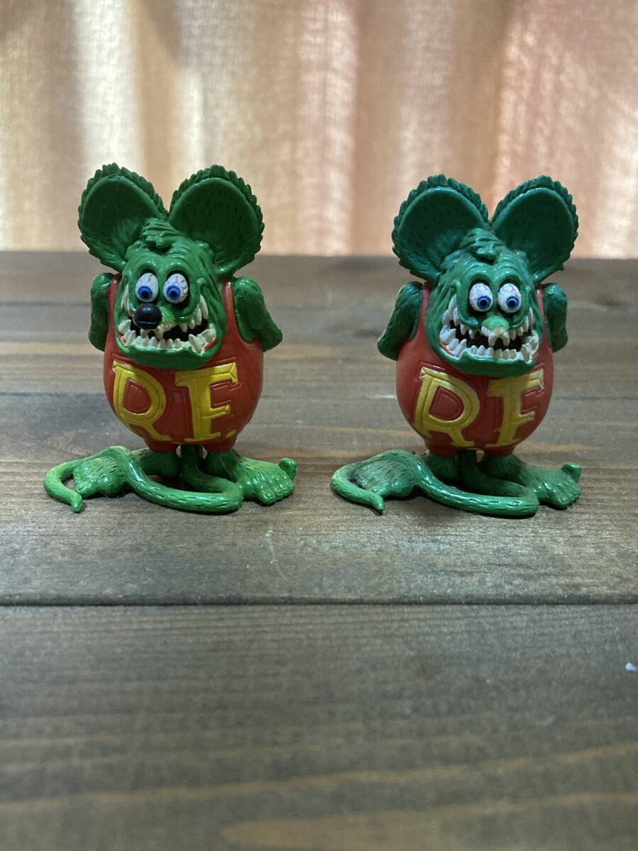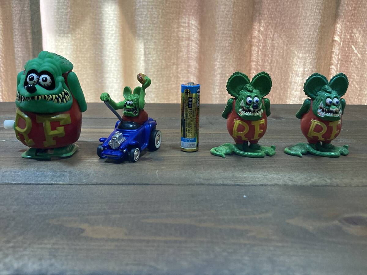 ラットフィンクのフィギュア、キーホルダー4点セットになります。単三電池はサイズ比較の為の物ですので付属しません。画像6枚目のフィギュアの鼻部分が欠損しています。その他は多少の傷や汚れはありますが目立つ傷等はありません。状態は画像にて確認お願い致します。画像に写っている物が全てです。中古品になりますのでノークレーム、返品不可でお願い致します。発送はゆうパック送料着払いになります。