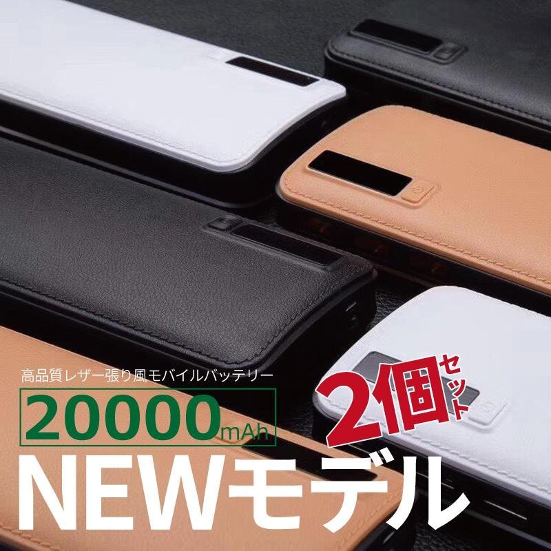 【ブラックX2個セット】 モバイルバッテリー 20000mAh 大容量 革張り風 軽量 3台同時充電 USB充電器 スマホ バッテリー 防災グッズ A62