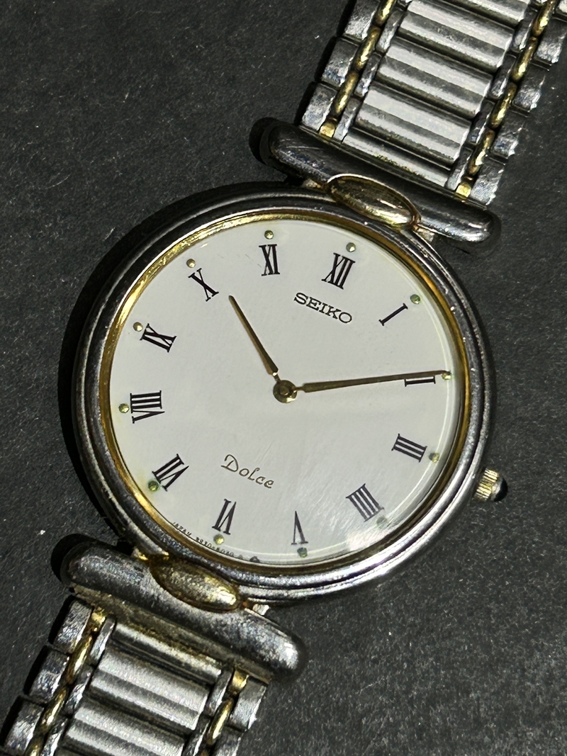 | セイコー Dolce メンズ 腕時計 の出品です。 動作はしていませんのでジャンク品としての出品です。 経年による傷やスレ、細部の汚れなどがあります。 状態など写真でご確認の上、ご入札をお願い致します。 基本的には used品の出品になります。 本文の記載事項があっても 現物優先とさせていただきます。 予めご了承下さいませ。 動作確認済みの物でも、時間の経過後の動作の保証はできません。 その他不明な点がございましたら、当方がわかる範囲にてお答えします。 | |||