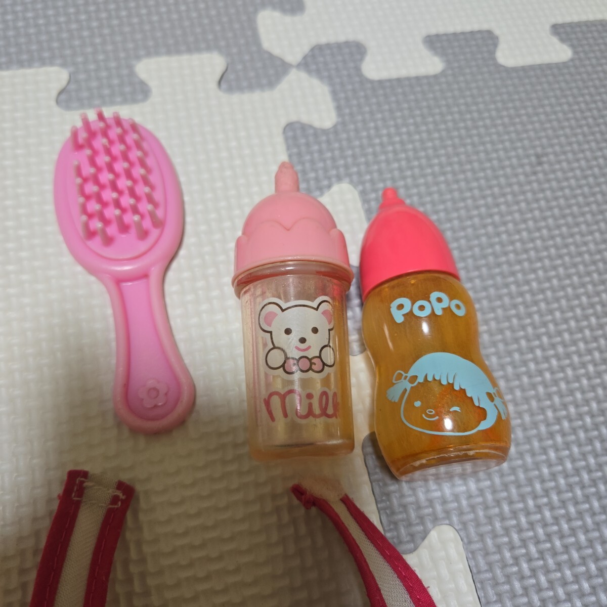 哺乳瓶は、白いミルクとオレンジの液がはいっていましたが、蒸発してありません。