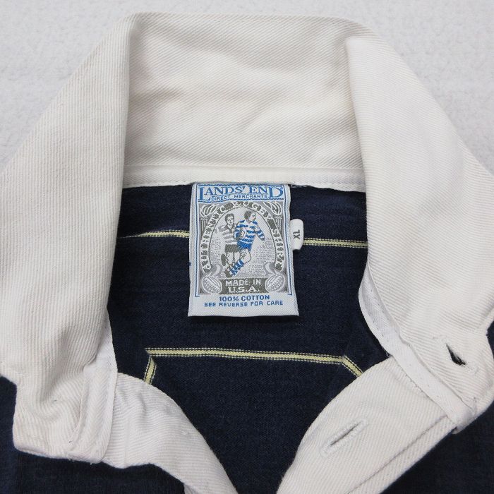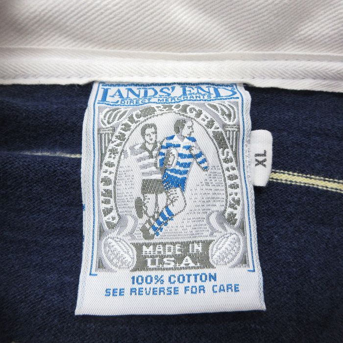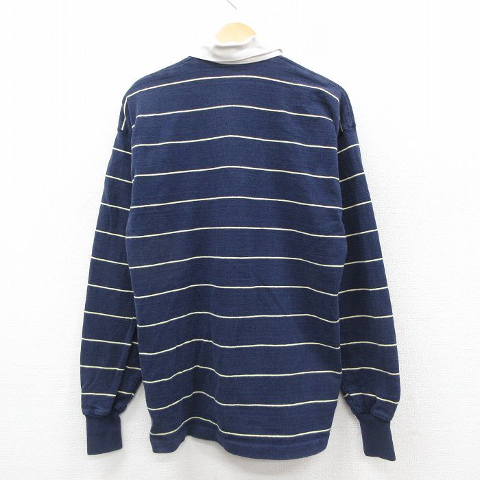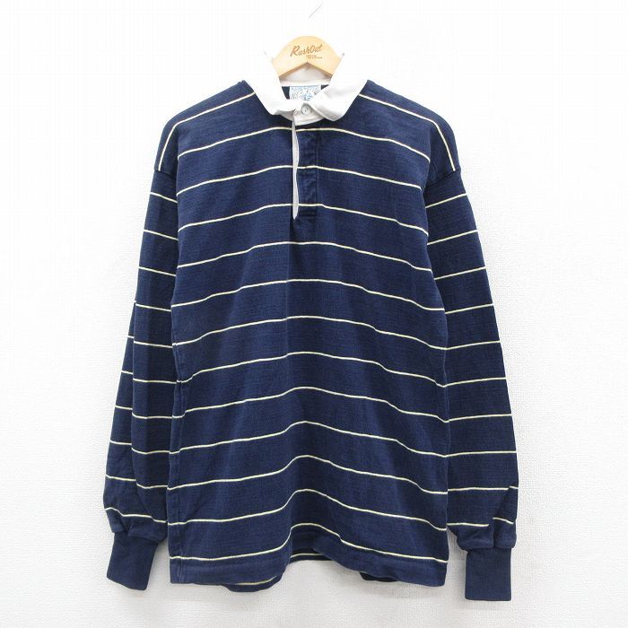 【商品名】 M★古着 ランズエンド 長袖 ブランド ラガー シャツ メンズ 90年代 90s コットン USA製 紺 ボーダー【spe】