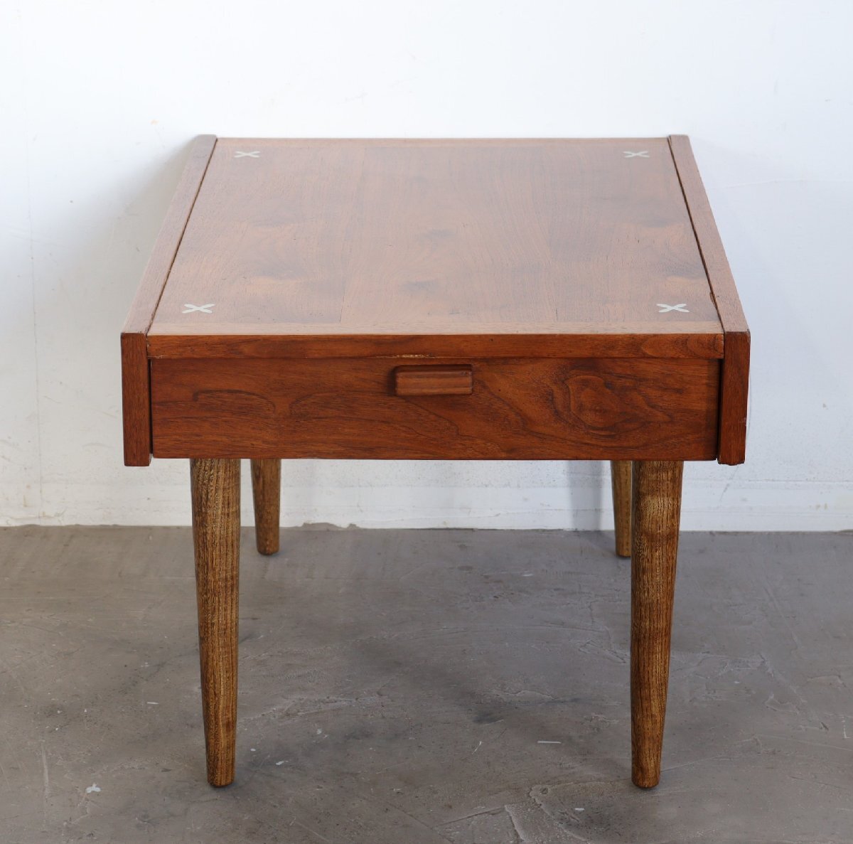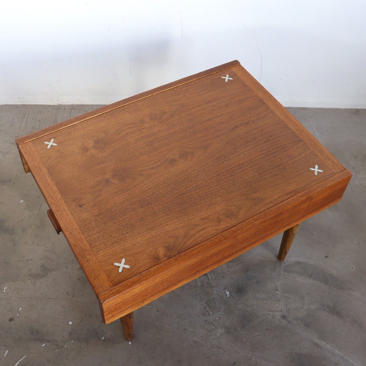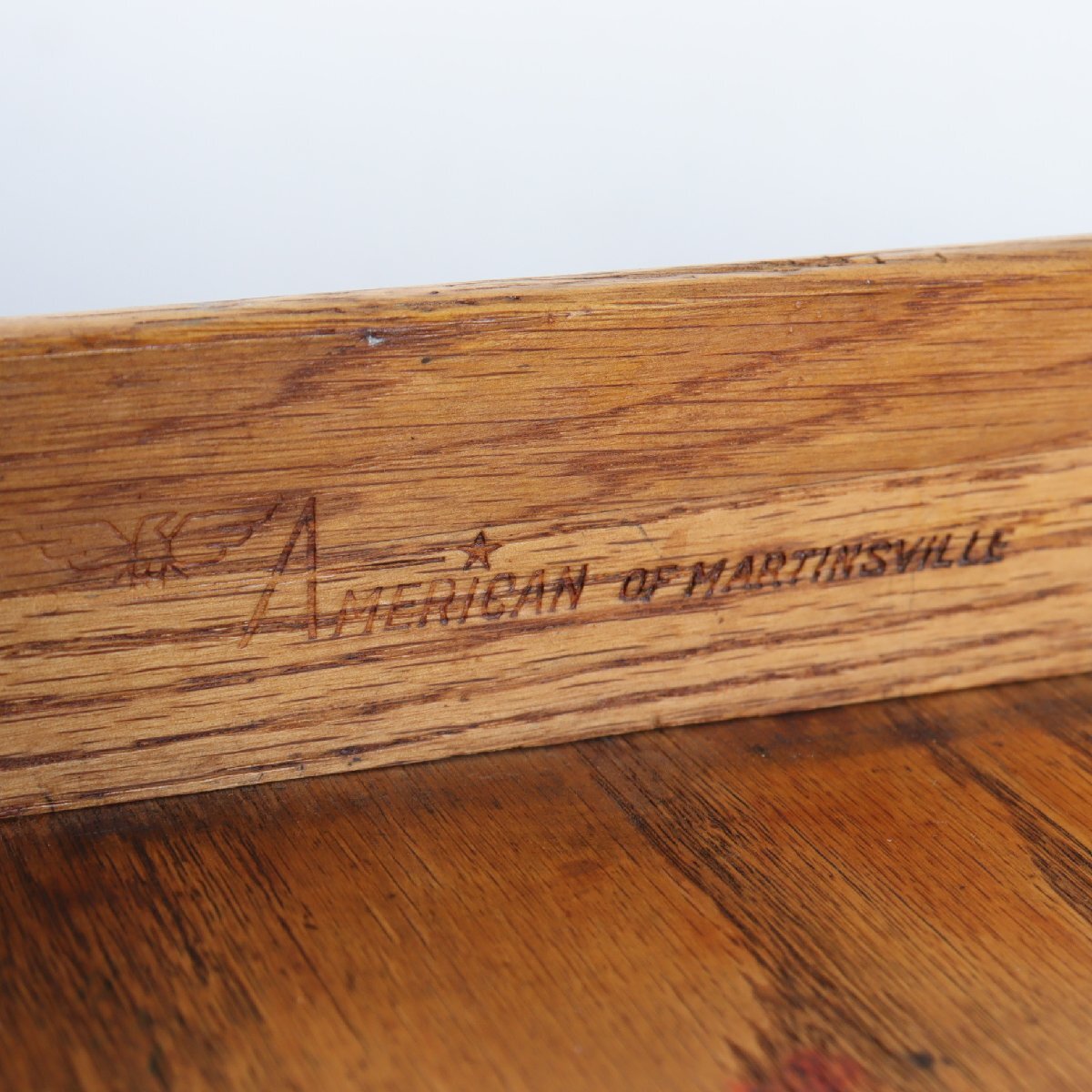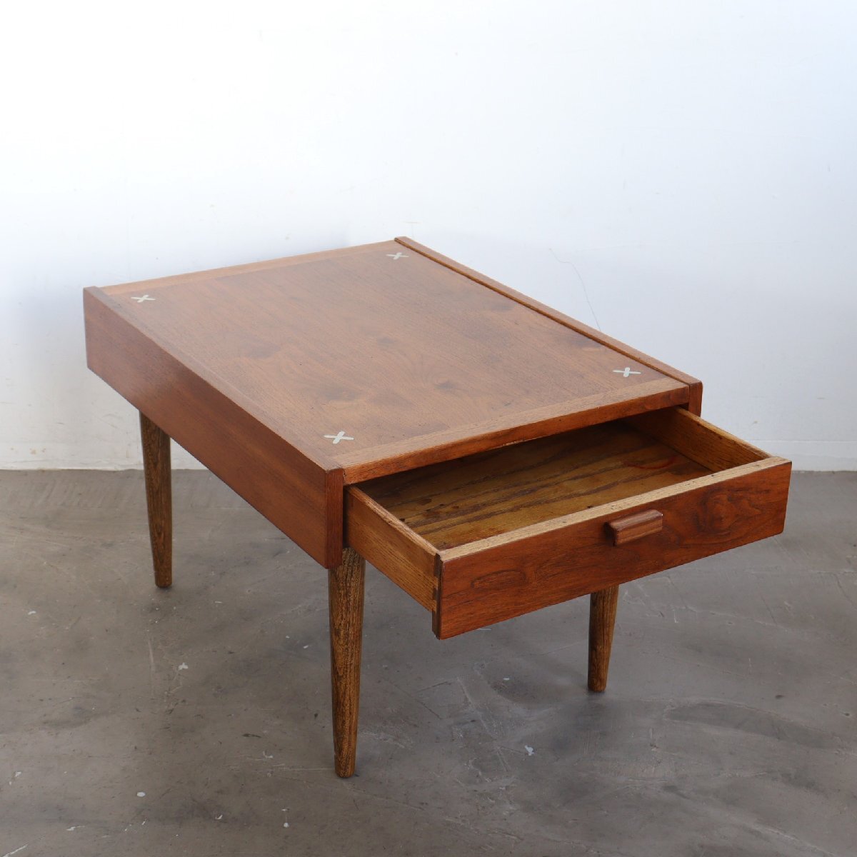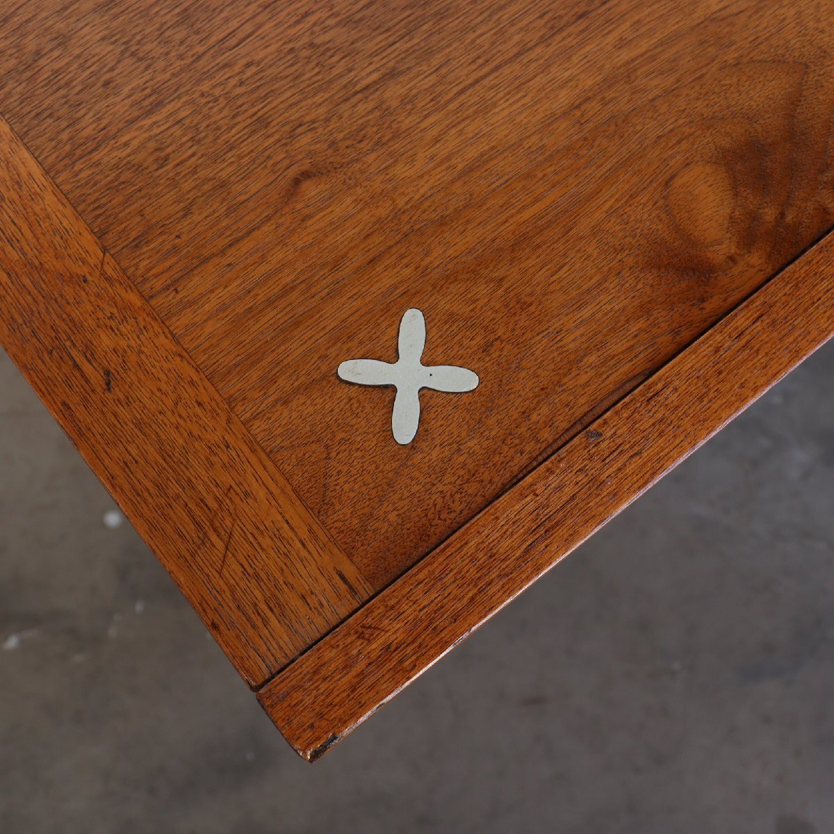 商品説明 explanation | 推定1960年代頃の「American of Martinsvillel」社製のコーヒーテーブルです。 同社は1906年に創業したアメリカの家具メーカーで、ミッドセンチュリー期を代表するメーカーです。 天板にメタルのインレイが施されておりデザインのアクセントになっています。 ウォルナットの木目や、経年による風合いも良く、ミッドセンチュリー期らしさの満載の雰囲気です ミッドセンチュリー家具は、世界的な人気により年々見つかりづらく、価格が高騰しています。 この機会にご自宅や店舗にいかがでしょうか。 |
