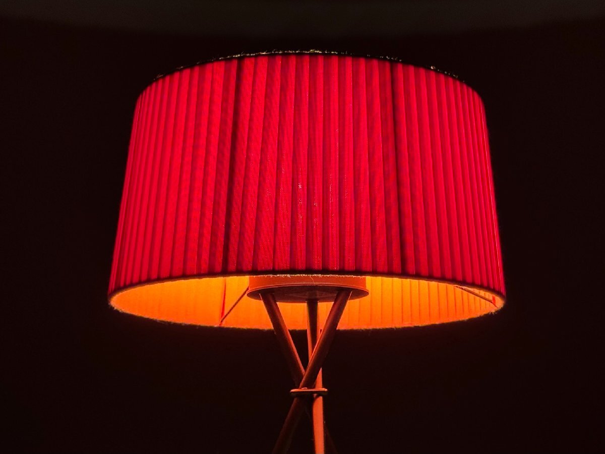 シェードに巻き付けたリボンの重なり合いの生み出す陰影の美しさで、ライティングデザインに不動の位置付けを誇る名作スタンドランプ。Santa & Cole より。