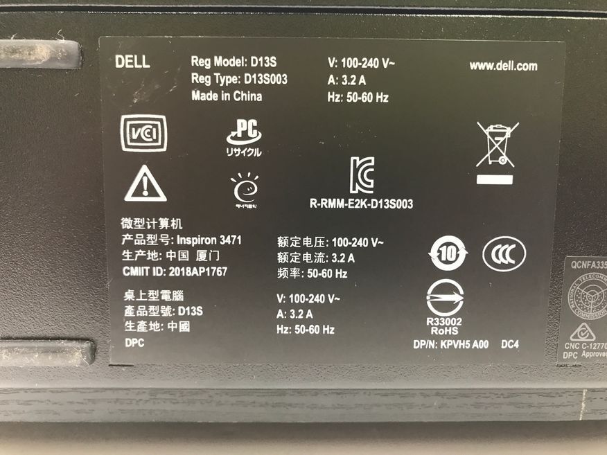 Dell Inc./デスクトップ/HDD 1000GB/第9世代Core i5/メモリ8GB/WEBカメラ無/OS無