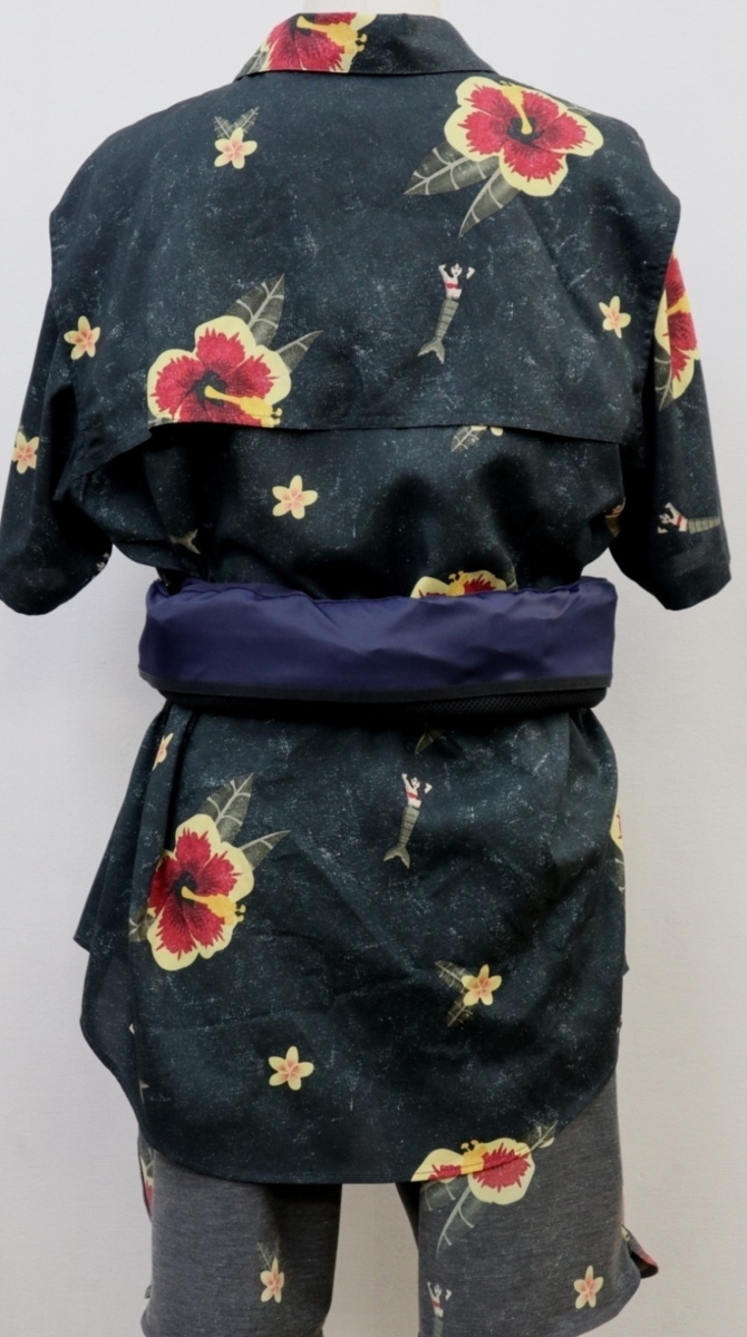 ![]() | 手動膨張式ライフジャケット。 タイプA(小型船舶用救命具)。 夜間でも発見しやすいように再起反射材(反射テープ)が貼り付けてあり、救命ホイッスル装備。 |