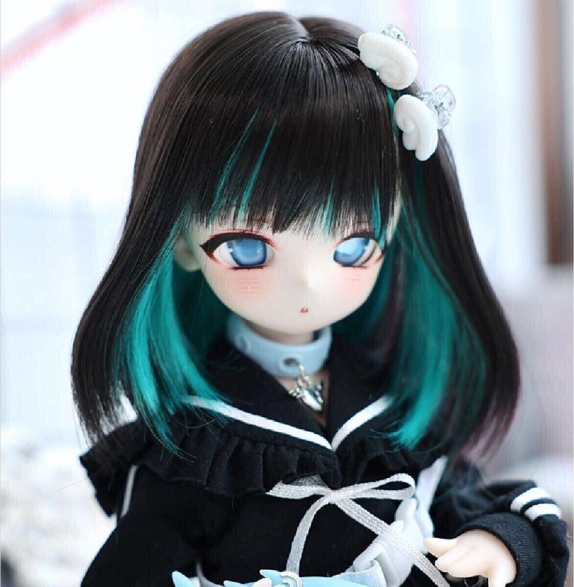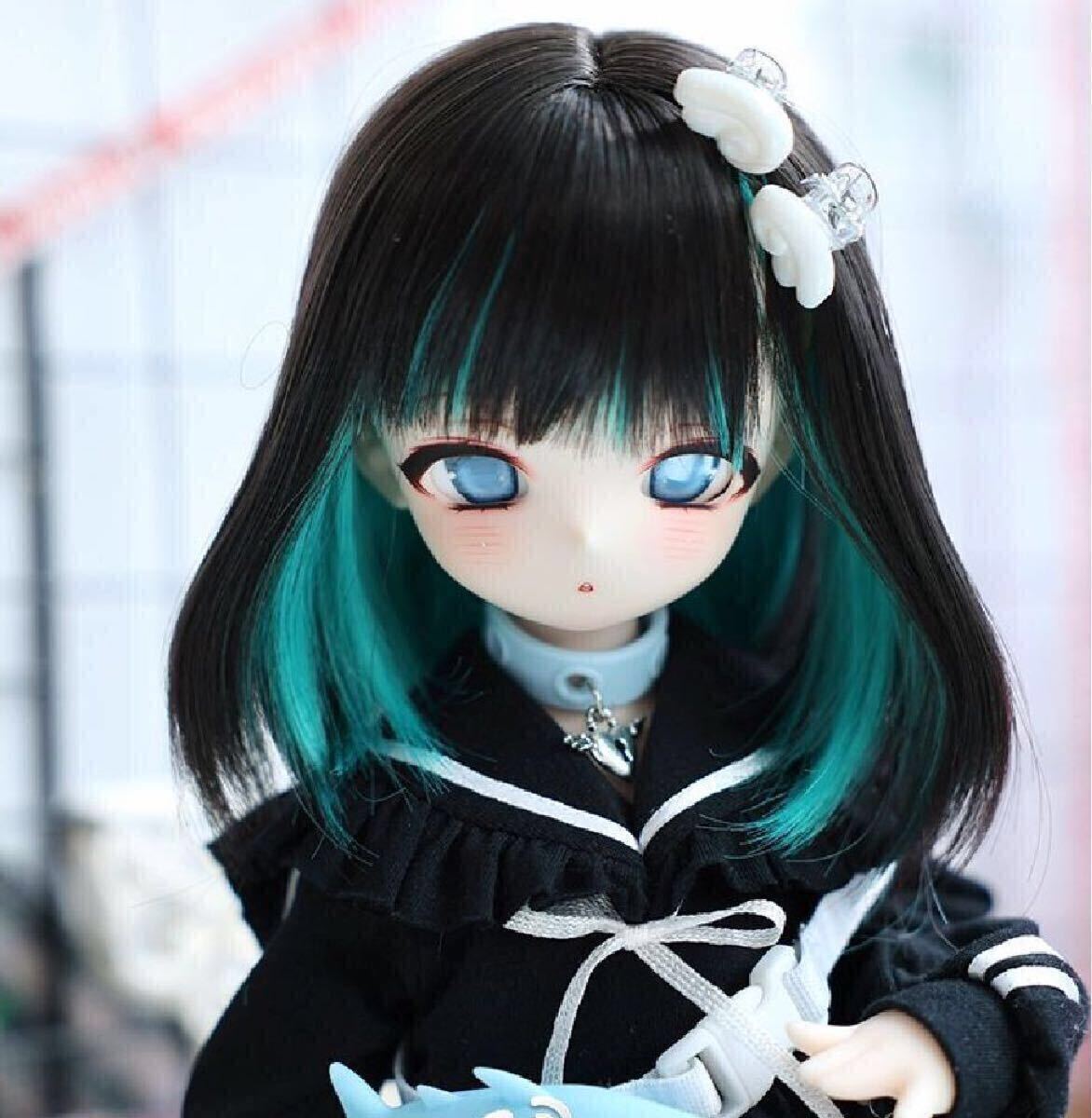 | ドール用 耐熱 ウィッグ バイカラー ボブヘア 8~9インチサイズ ブラック×グリーン 1/3ドール互換かつら ドール グッズ | ||||