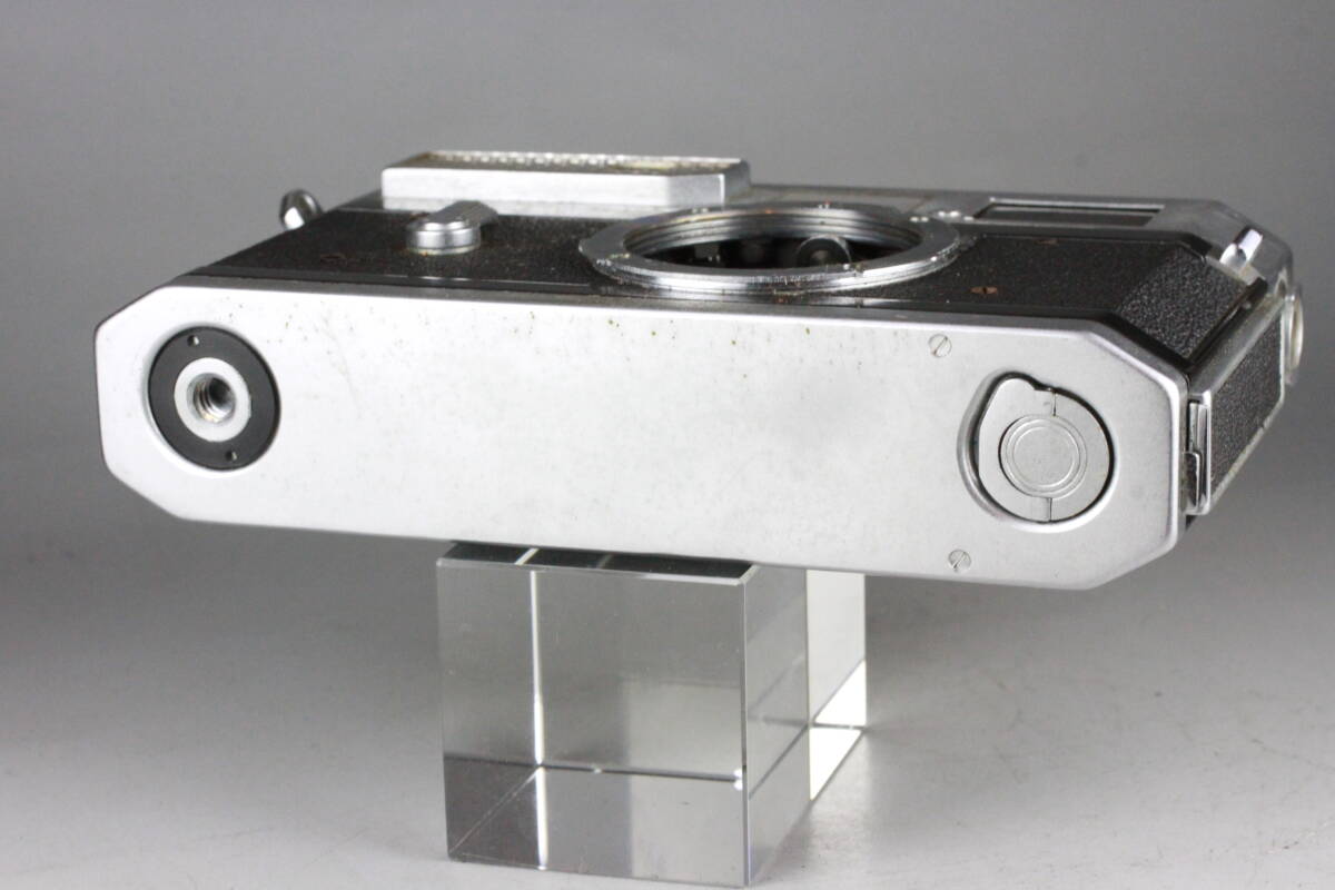 外観 経年使用による多少のスレや傷はございますが、動作に影響のあるような傷などはございません。 動作系 シャッタースピードに応じてシャッターは切れています。 ファインダー内、多少のホコリやカビは見られますが視認性は確保されております。 二重像はっきりと確認できます。 レンジファインダーも動作しております。 セルフタイマーも問題ありません。 露出計は精度不明ですが光に応じて反応しております。 まだまだ使える、実用の一品です。 ぜひ大切にお使いください。 |