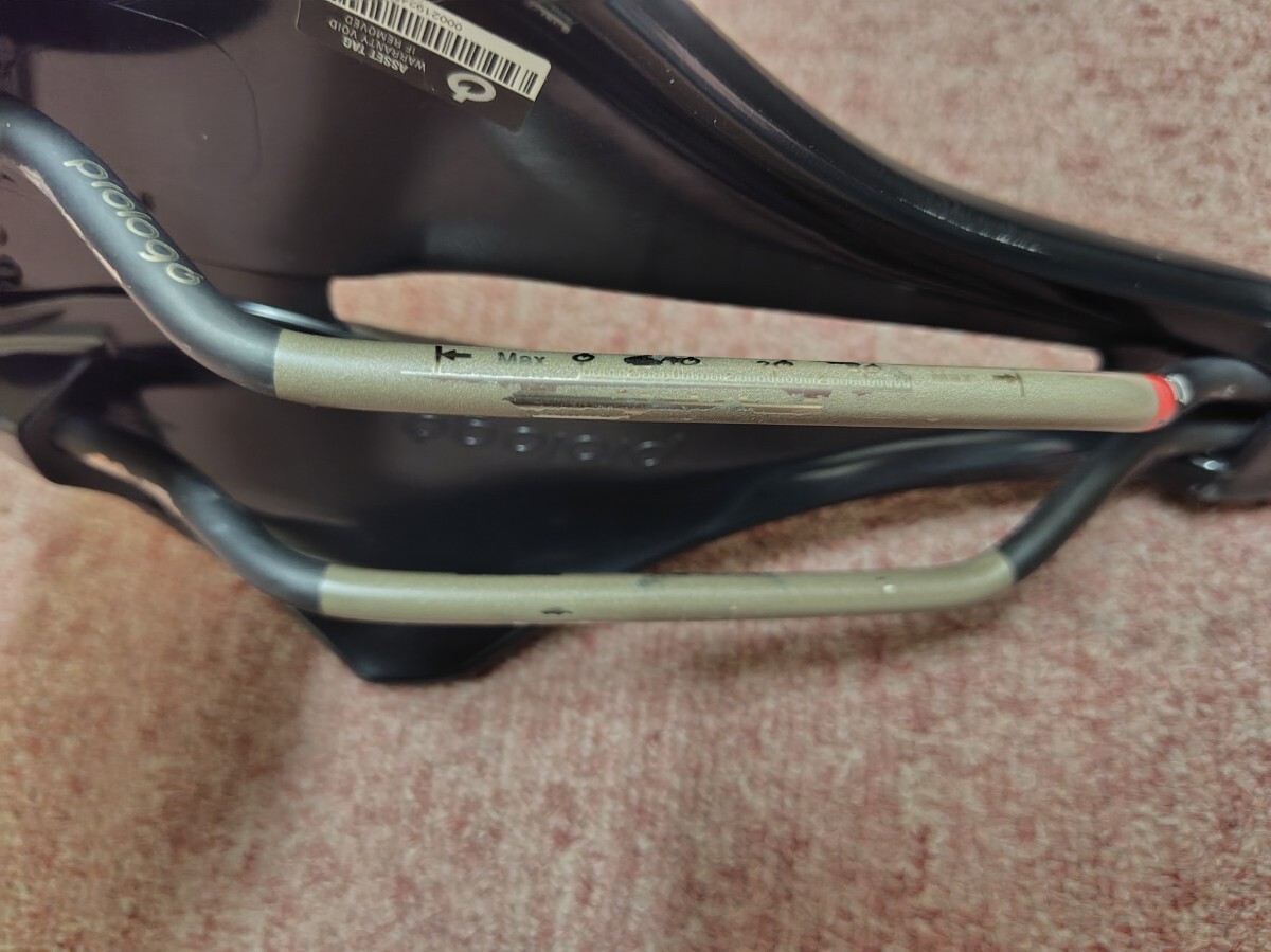 サドル先端右側のメーカーロゴが擦れて薄くなっております。