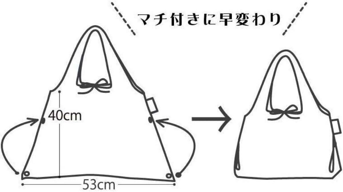 サイドのスナップボタンを留めるとマチ付きの小さめバッグになる2Way仕様です。
