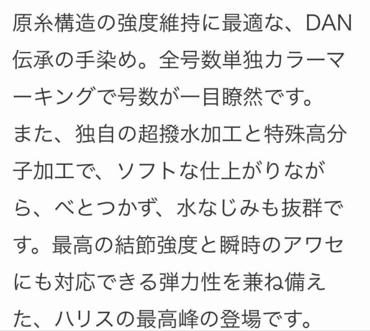 最高の結節強度と瞬時のアワセにも対応できる弾力性を兼ね備えたハリスの最高峰