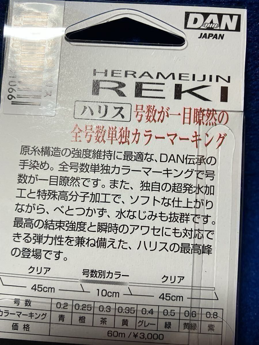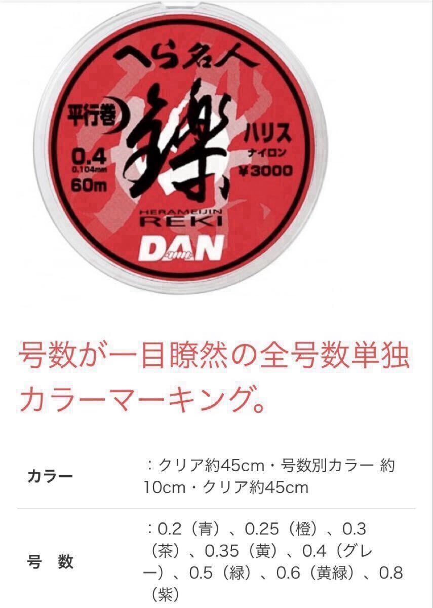 DAN へら名人 ハリス 『れき』0.3号 60m ナイロン、カラーマーキング、ソフト仕上げ、管理池、湖沼河川、放流、野べらなど