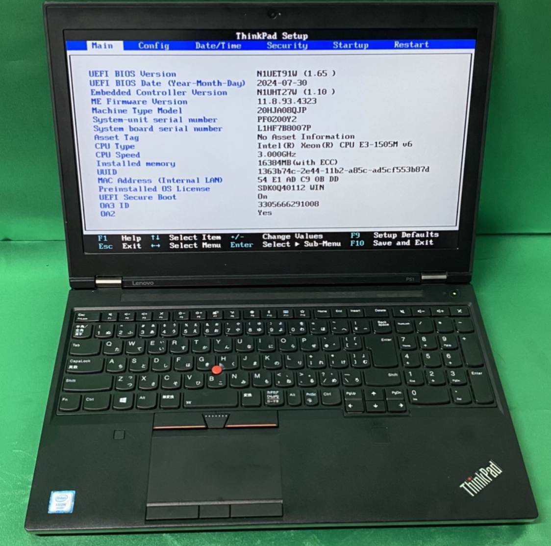 1062A ● Lenovo P51 モバイルワークステーション ● Xeon E3-1505M V6 3GHz BIOS起動確認済