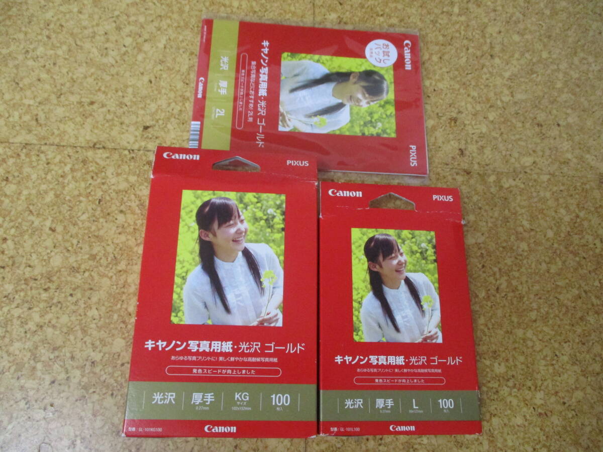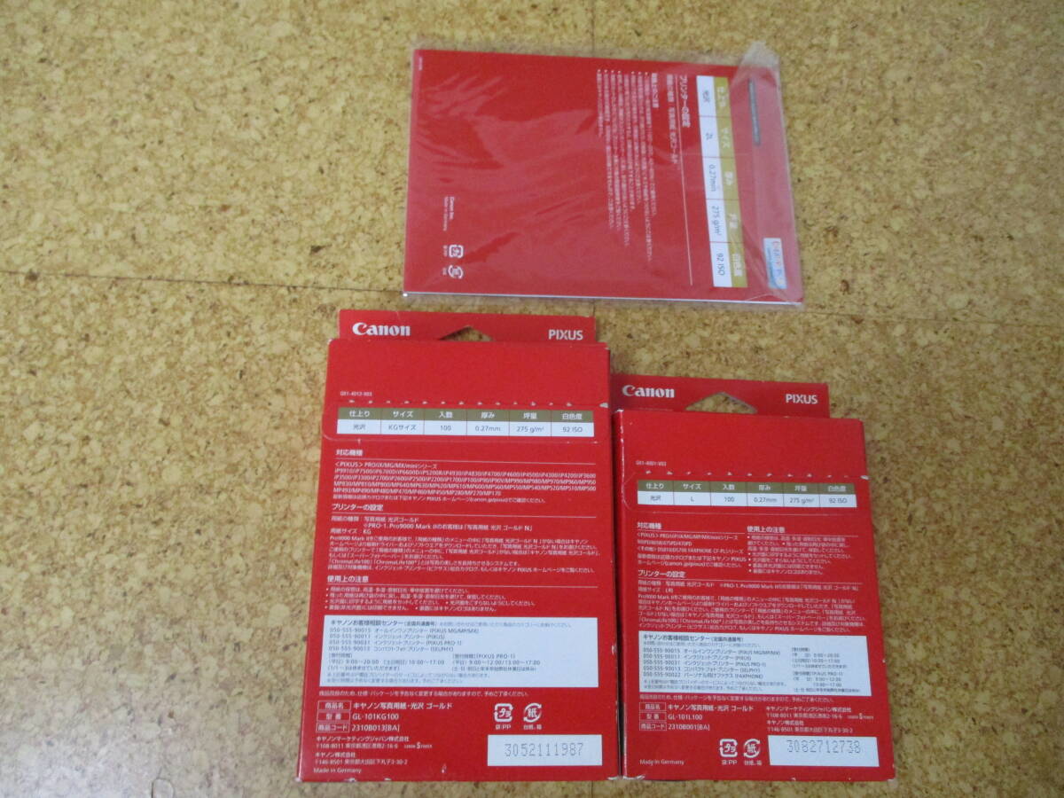 ◎キヤノン 写真用紙 光沢 ゴールド★KGサイズ100枚(未開封)2Lサイズ(お試しパック、未開封)Lサイズ(開封済、残半分程度)