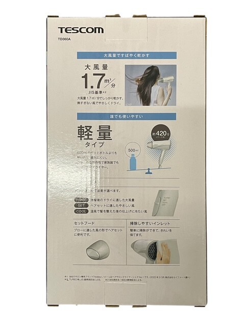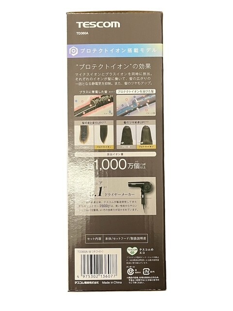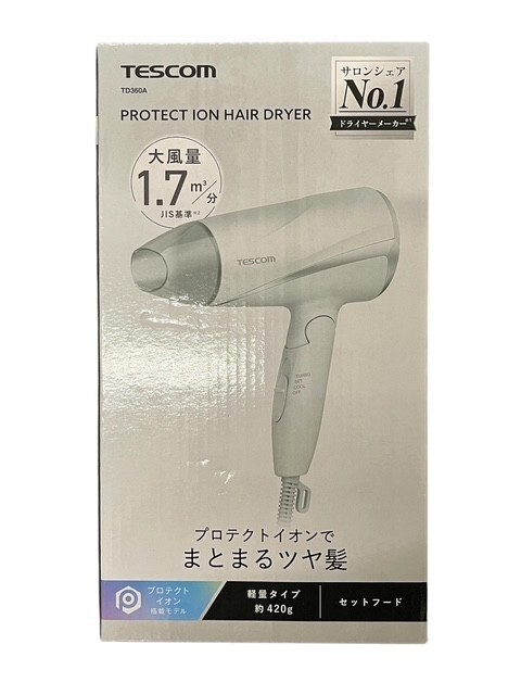 10-25 未使用 テスコム プロテクト イオン ヘアドライヤー TD360A-W TESCOM マナスイオン 髪つやアップ 大風量 軽量420g ホワイト