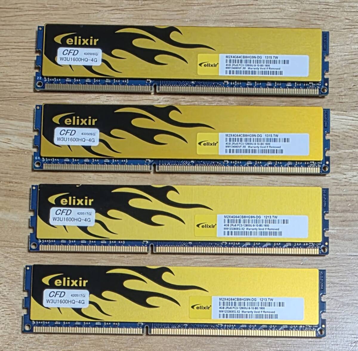 CFDのDDR3メモリ、W3U1600HQ-4G(PC3-12800 4GB×2枚)の2セットです。