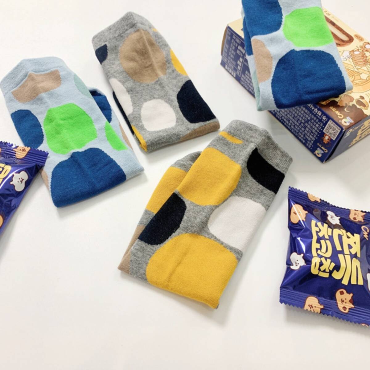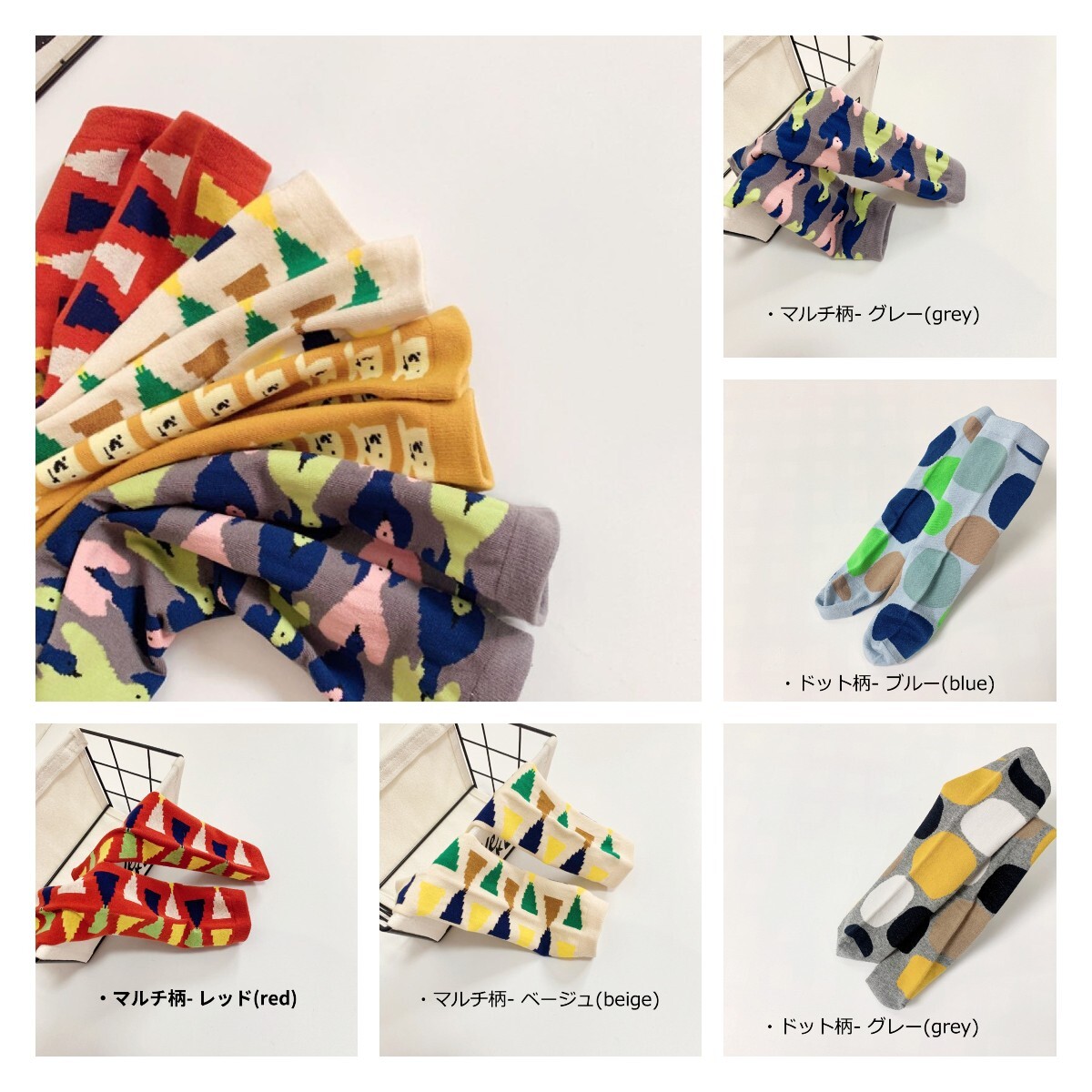 カラフルなマルチ柄、アクセントになるポップな配色の大きなドット柄全部5タイプ、どの柄も足元に彩りを添えてくれます。