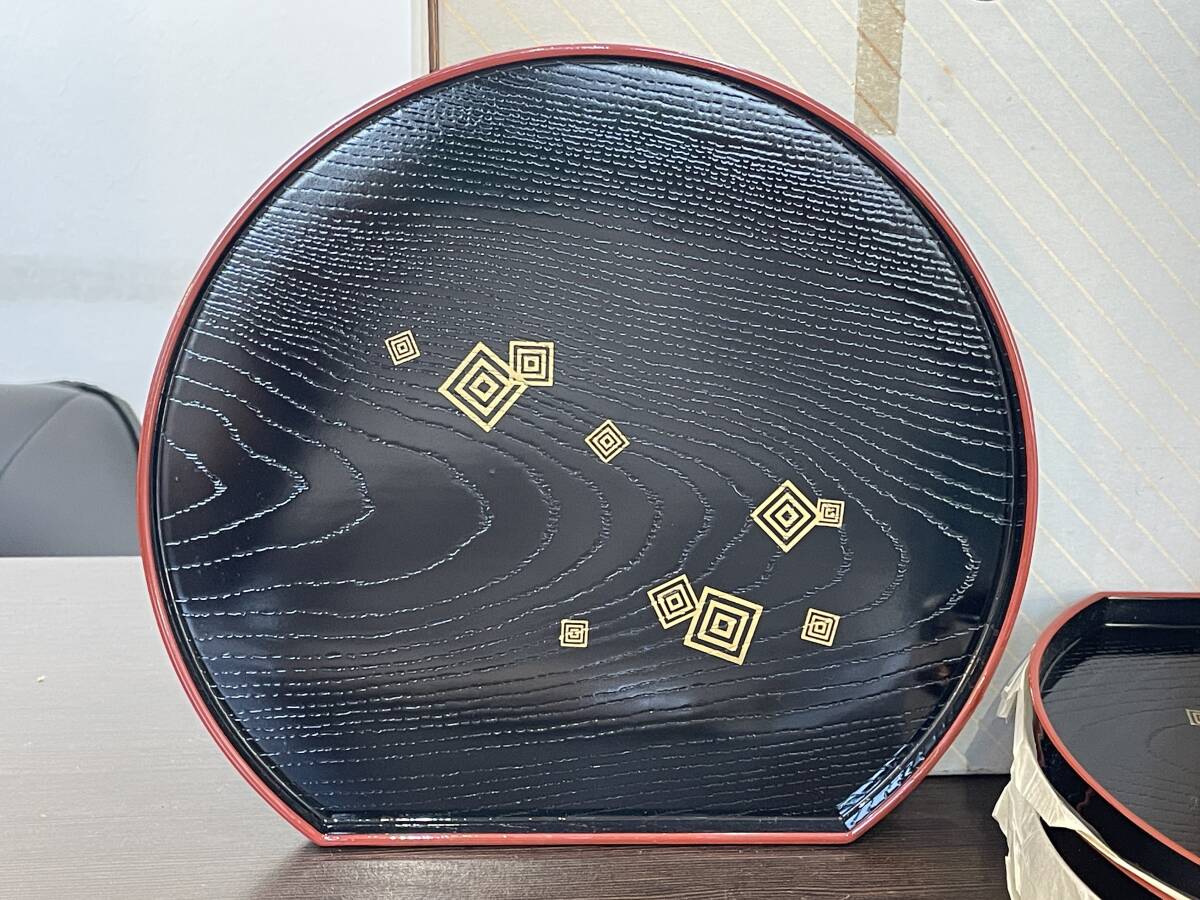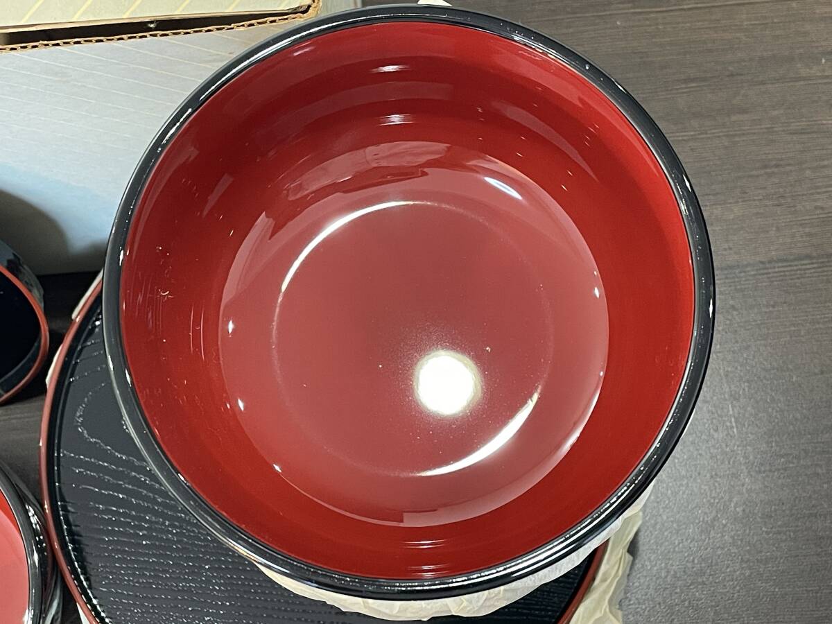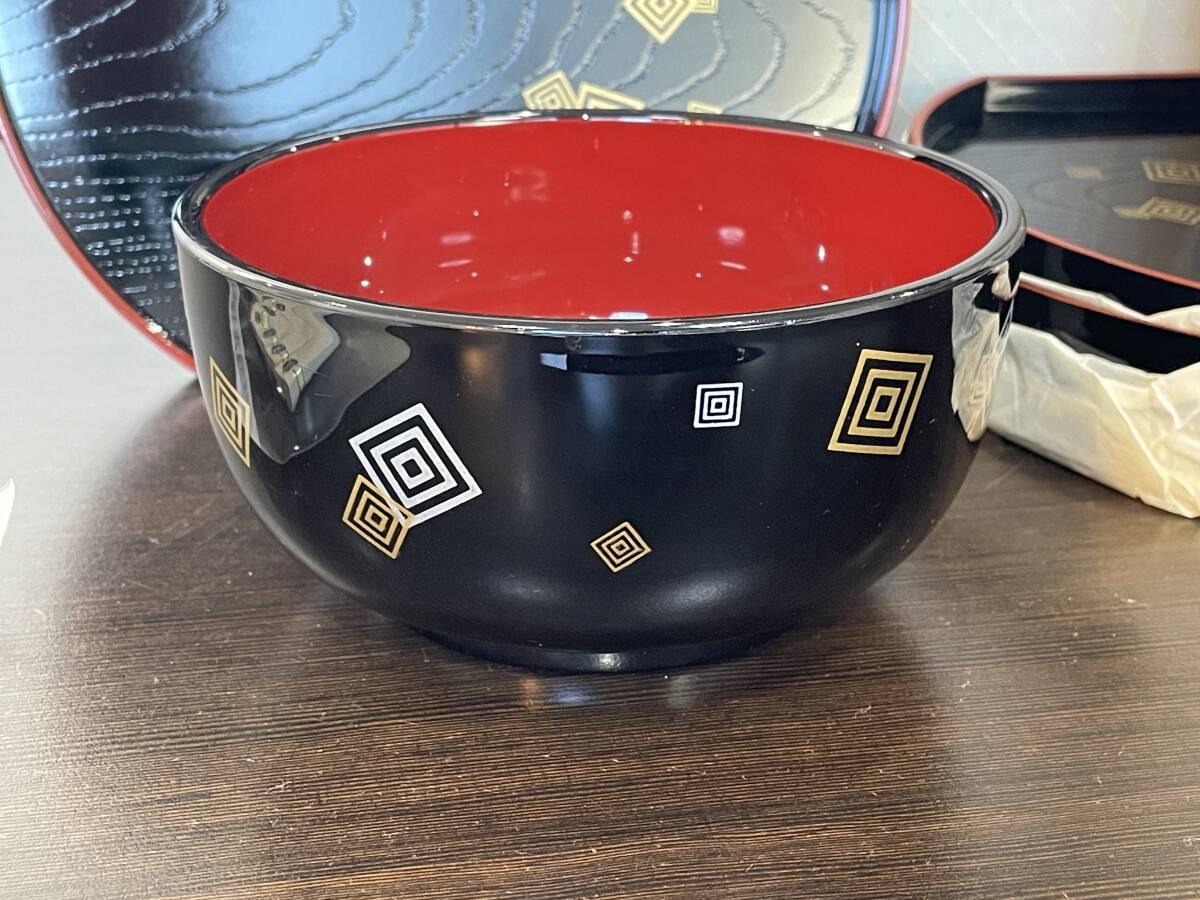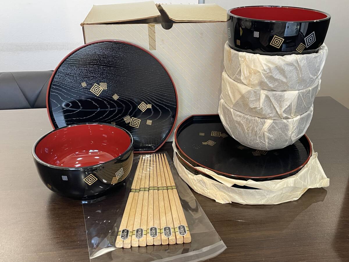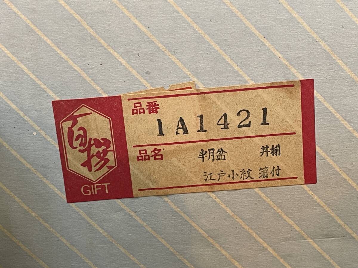 ★【和食器 5客セット どんぶり お箸 お盆】江戸小紋 半月盆 丼揃 箸付き 品番:1A1421★未使用品
