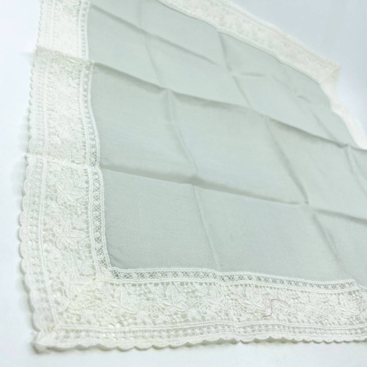 ハンカチ バンダナ 縁レース ロゴ刺繍 人物 横顔 植物 リーフ ライトグレー系 ラグジュアリー エレガント