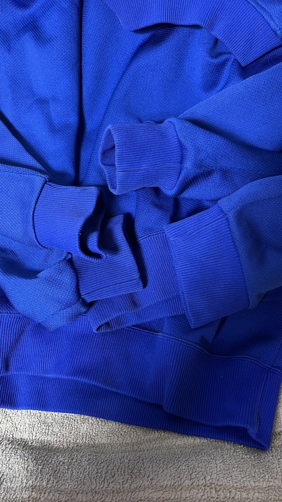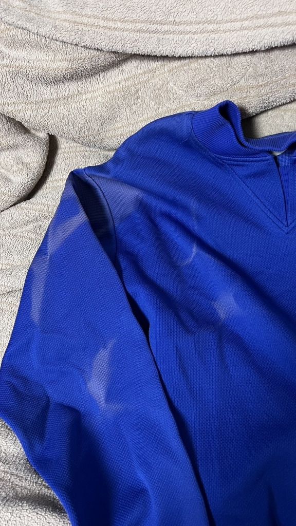 長袖の左胸に苗字のシールと団体名あります。1枚苗字のシール剥がれた痕があります。
