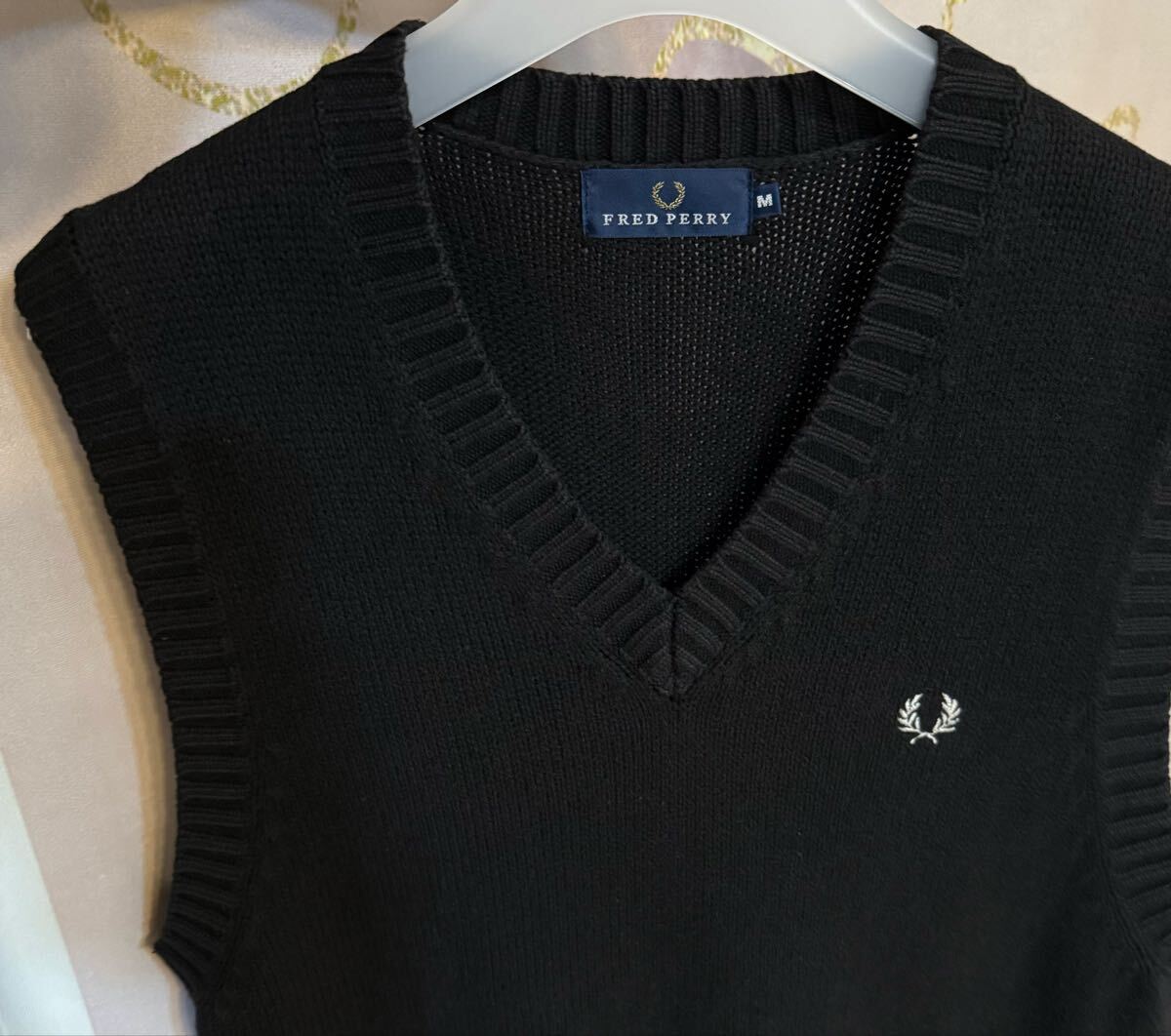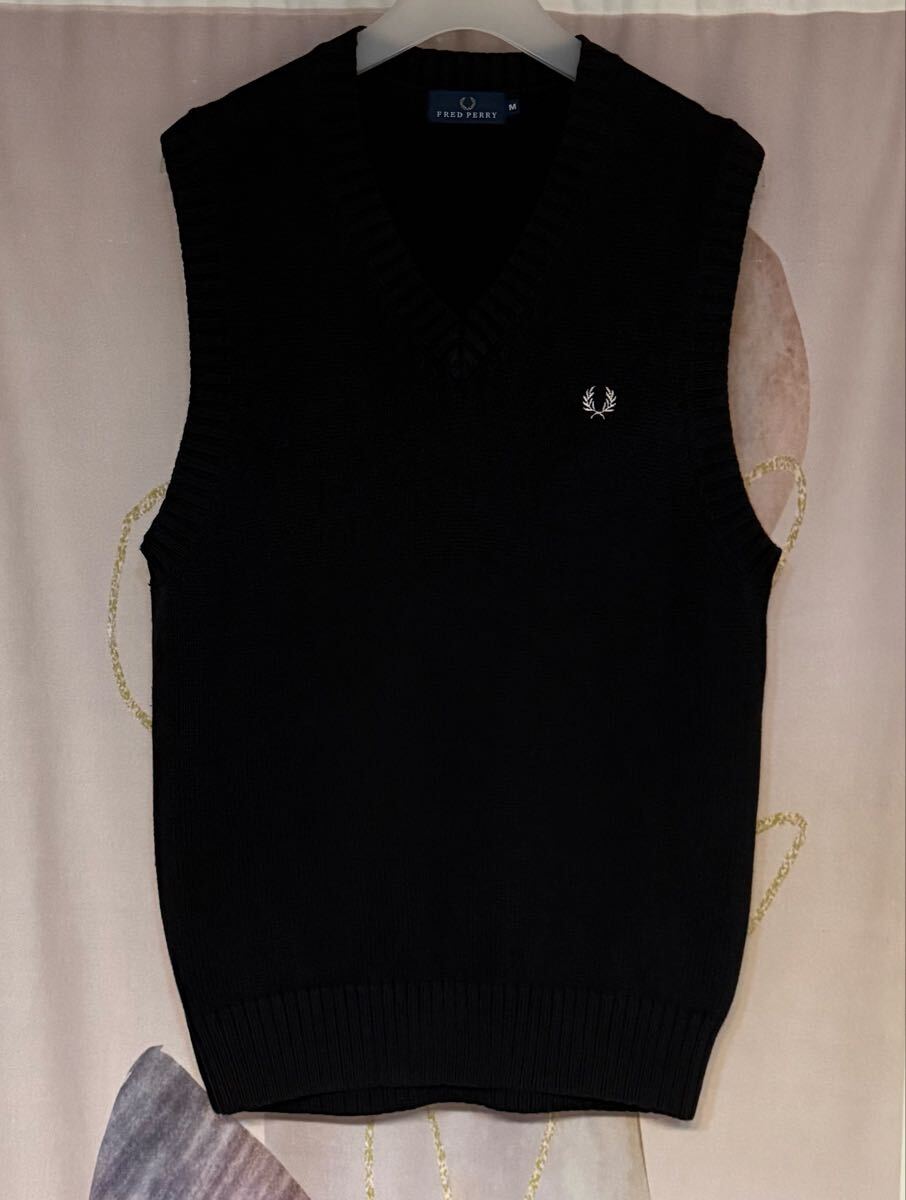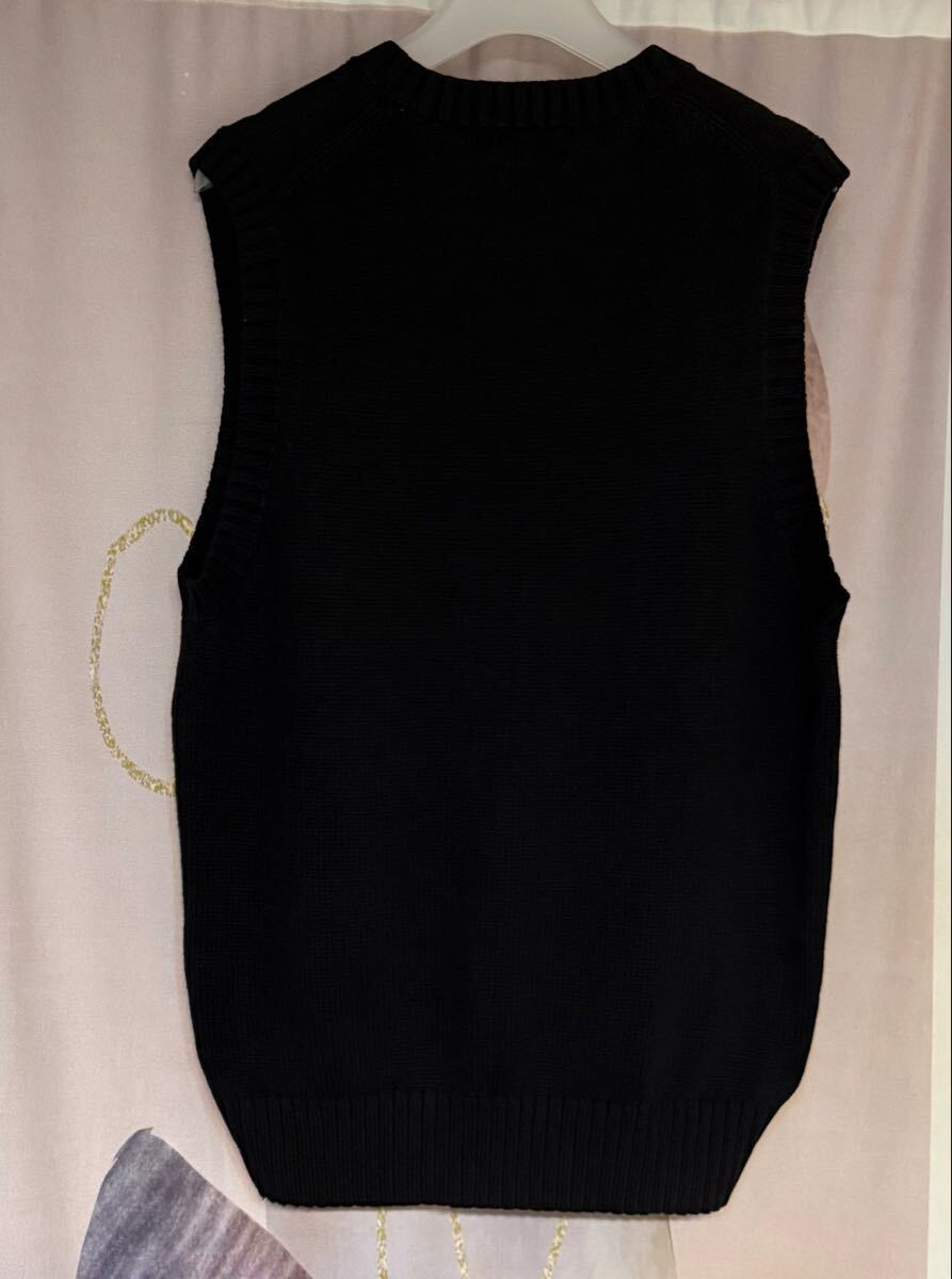 ・上質なコットン100%を使用した着心地の良いVネックニットベストとなります。