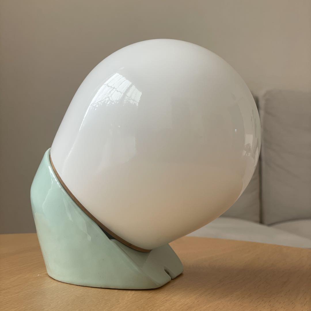 Bauhausの巨匠Wilhelm Wagenfeldによる時代を超越したデザイン。機能的でエレガント。ベースは白磁、シェードは多層オパールガラスにより構成されています。