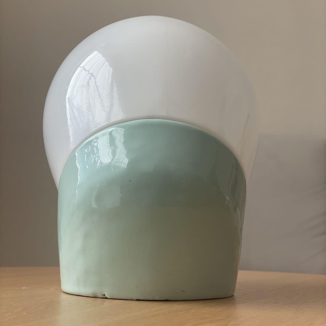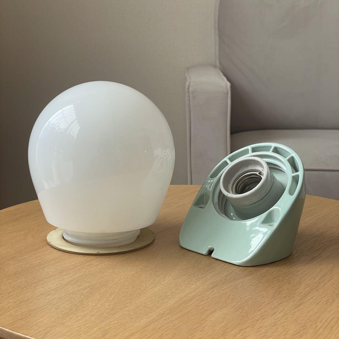1950年代ドイツ製Lindner社のW. Wagenfeldデザインによるオパールガラスのヴィンテージ照明になります。シーリングランプやウォール ランプ、テーブルランプとしてご使用いただけます。