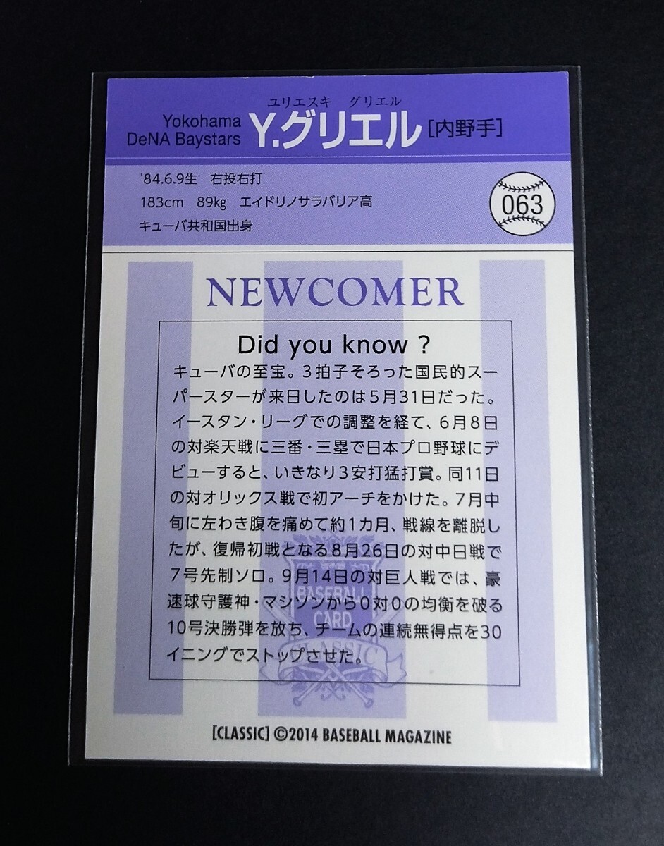 2014年BBM CLASSIC グリエル(DeNA)No,063。YULIESKI GURRIEL
