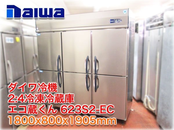 ダイワ冷機 2:4冷凍冷蔵庫 エコ蔵くん 623S2-EC を出品いたします。 ■特徴■ 業界初となる真空断熱材の採用、 ドアバック・ガスケットの改良により 省エネ性がさらに向上。 トリプルインバータ 圧縮機と庫内ファン・凝縮ファンを 高精度にインバータ制御。 冷凍冷蔵庫は冷凍・冷蔵ともに 圧縮機をインバータ制御。 真空断熱材採用 真空断熱材の採用で庫内への熱侵入を削減。 ノンフロン断熱材の採用 自然冷媒である「シクロペンタン」を発泡剤とした ノンフロン断熱材を採用しました。 省エネが見える温度表示部 ecoランプの点灯で 省エネ運転がひと目で分かる温度表示部。 連続30万回の開閉テストクリア 扉にはステンレス製ヒンジを採用。 詰めすぎ防止のストッパー付網棚 網棚に詰めすぎ防止のストッパーを取付け、 冷気の流れをスムーズにし、温度ムラを抑えました。 庫内アール仕上げ 庫内の各コーナーにアール加工をしていますので、 掃除が楽に行えます。 前パネルがスイングアップ スイングアップ方式採用で点検 及びメンテナンスが簡単に行えます。 ■仕様■