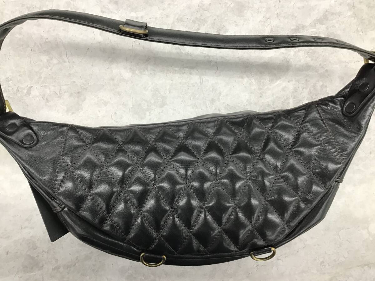 ・フロントに革ジャンと同様のパテッドを纏ったショルダーバッグ
