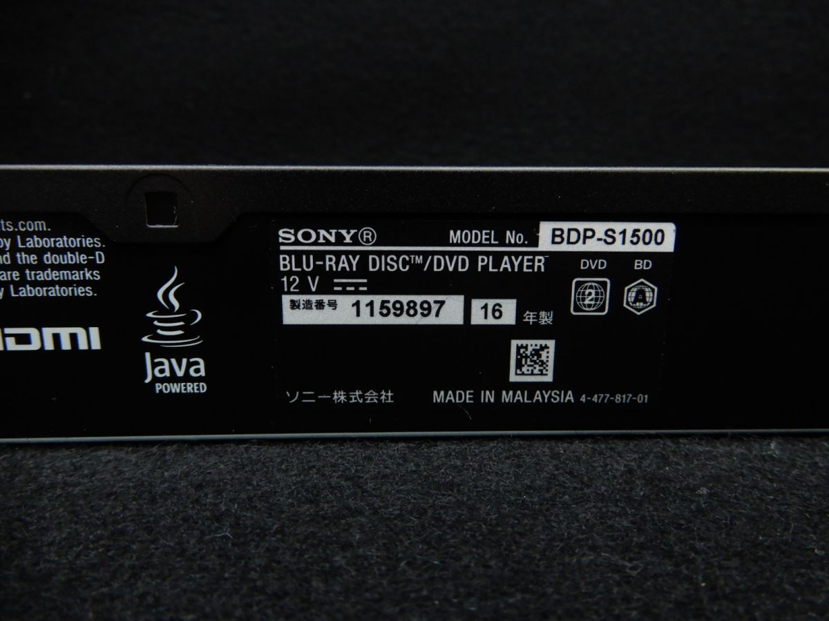 ★SONY BDP-S1500 ブルーレイディスク/DVDプレーヤー★ソニー/消費税0円