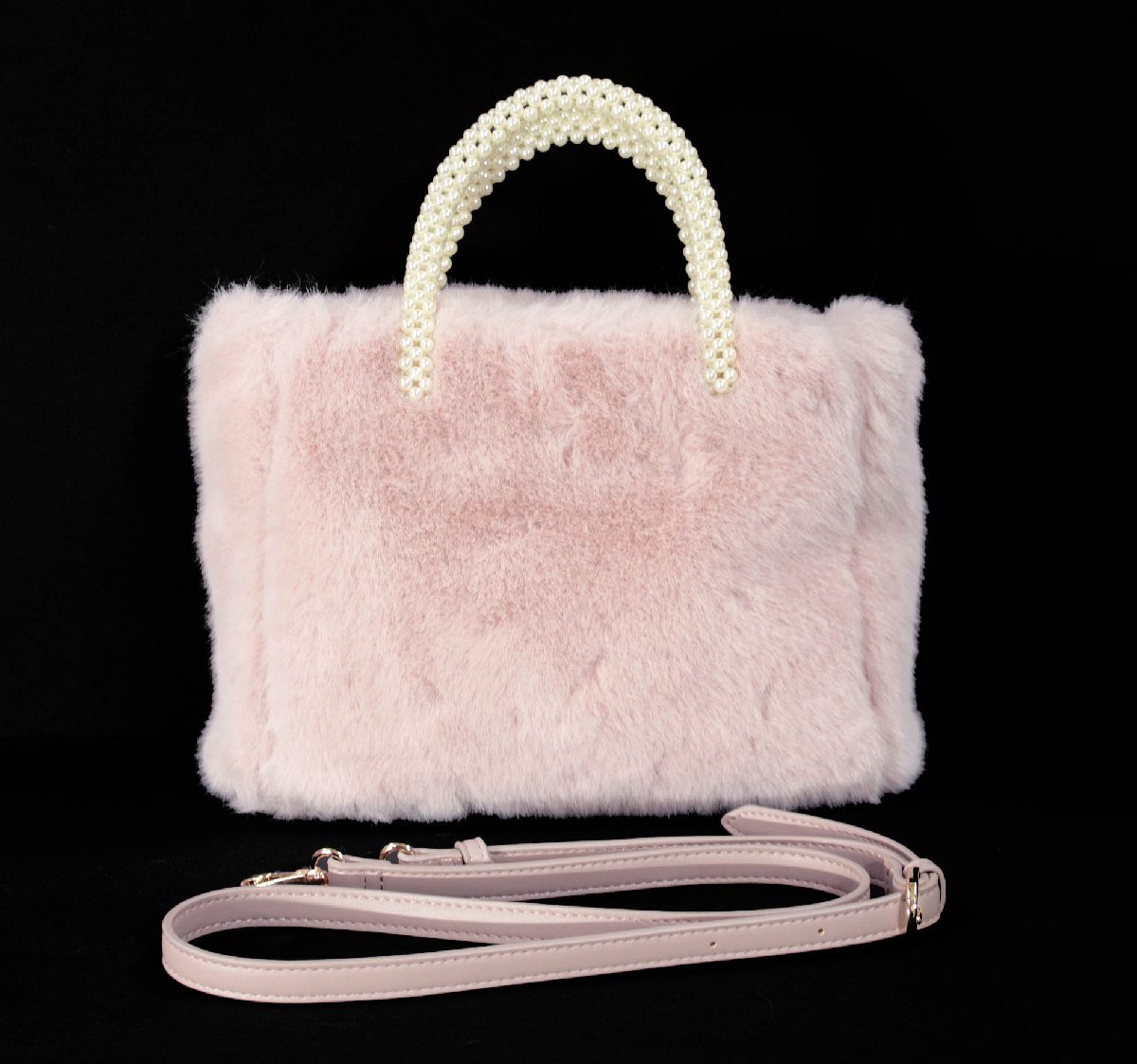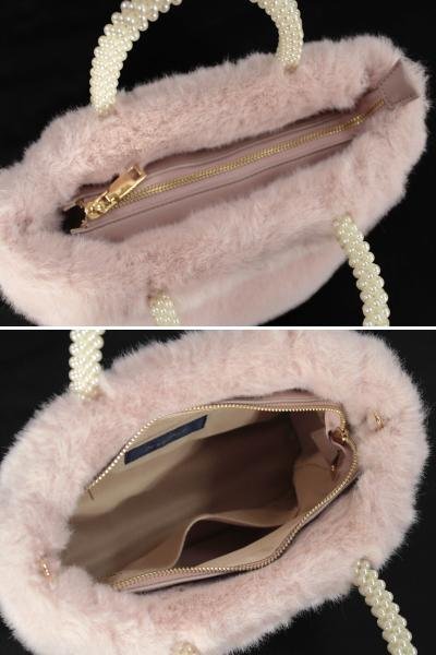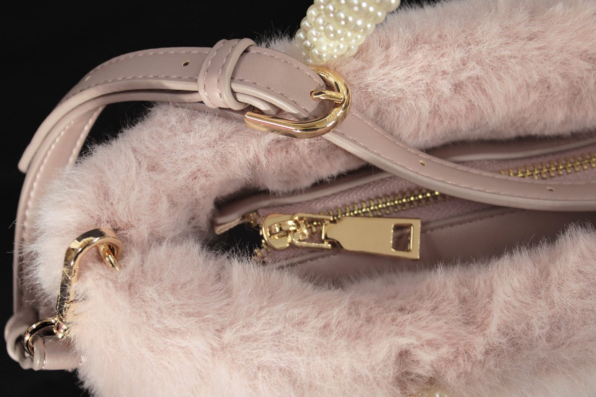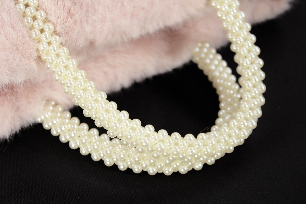 ふわふわのエコファーにパールのハンドルがあしらわれたエレガントなデザインです。