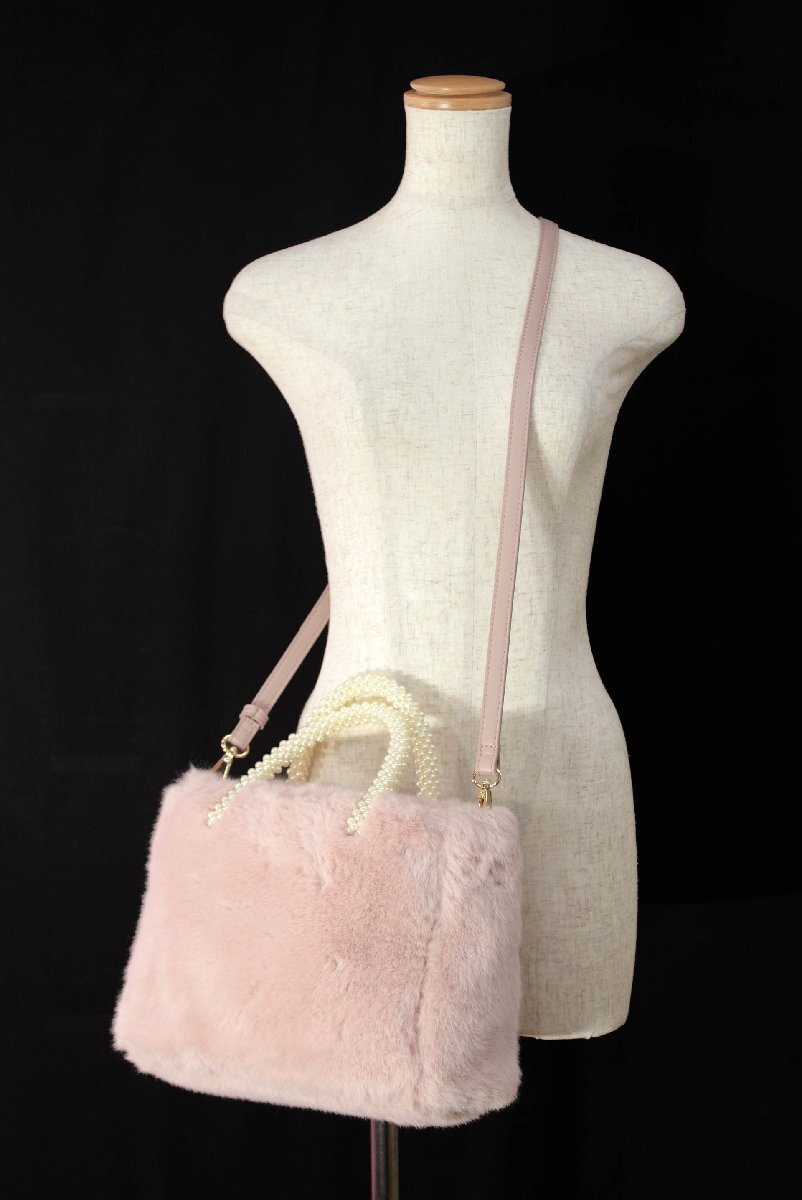 ☆カタログ掲載/美品2022☆エムズグレイシー/2wayエコファーハンドバッグ定価1.4万:ピンクyx764