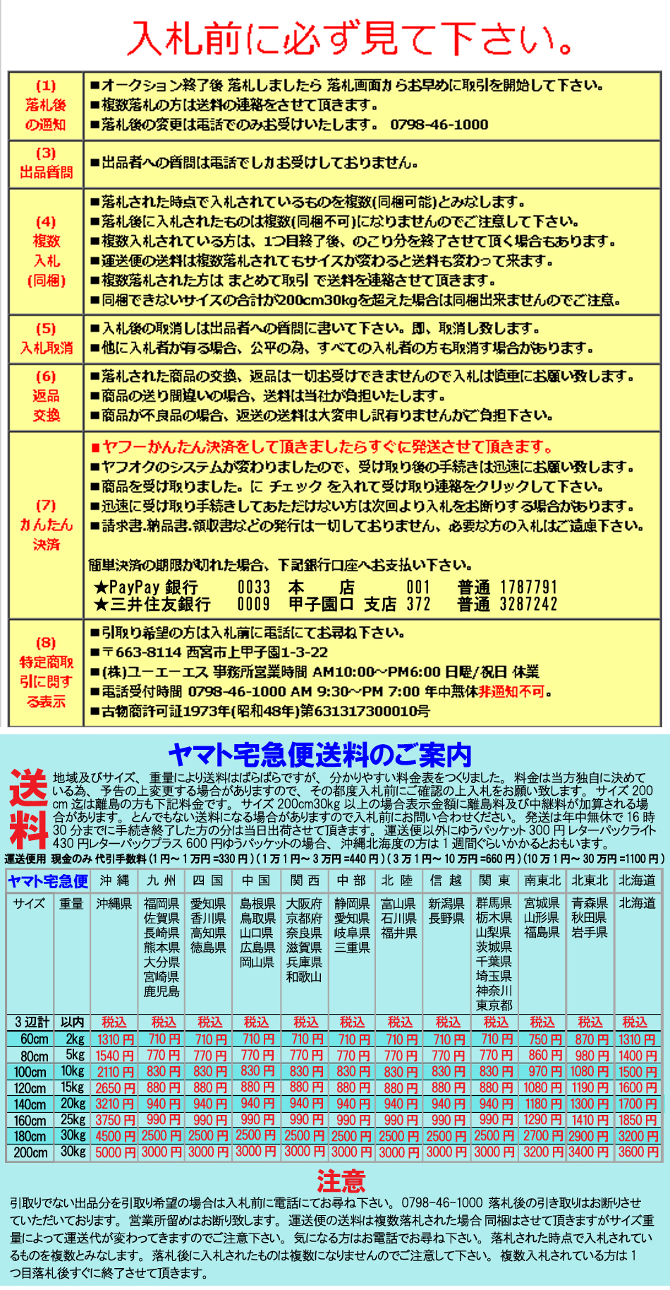 | 出品者への質問は電話でしか受け付けておりませんのでご注意下さい。 |